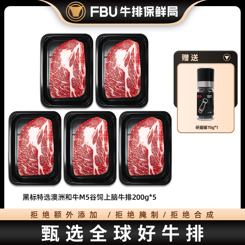 【M5M9和牛】FBU牛排保鲜局原切谷饲雪花上脑儿童牛扒澳洲进口