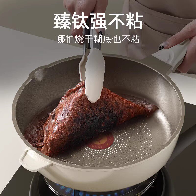 钛无涂层平底锅不粘锅家用牛排电磁炉煤气灶专用炒菜锅不沾深煎锅