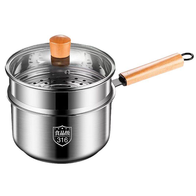 奶锅加厚婴儿宝宝辅食锅家用小奶锅汤锅带蒸笼食品级做饭无涂层