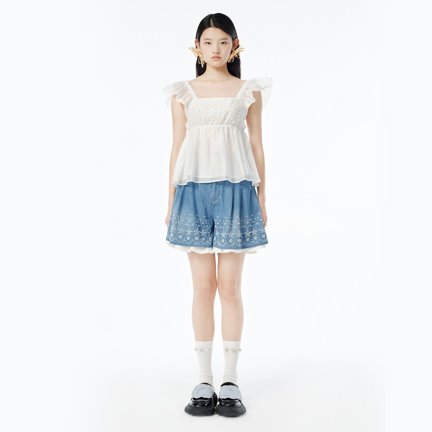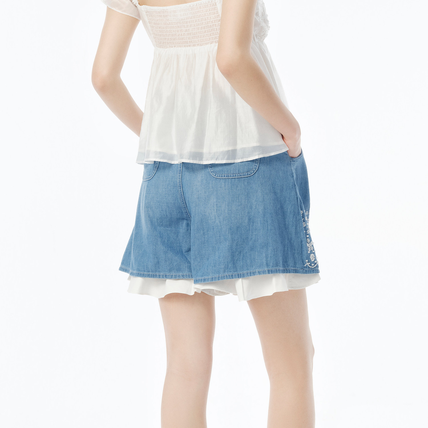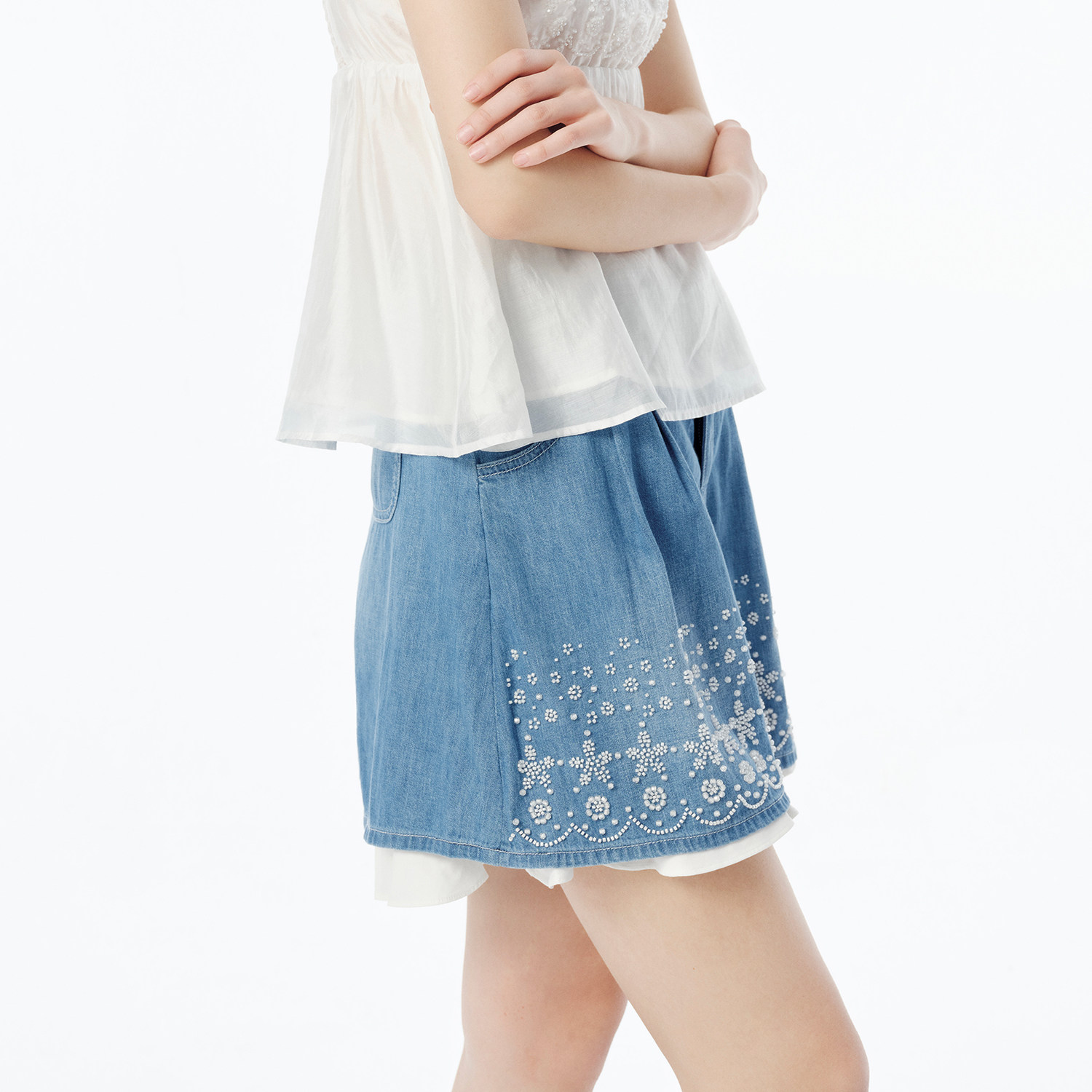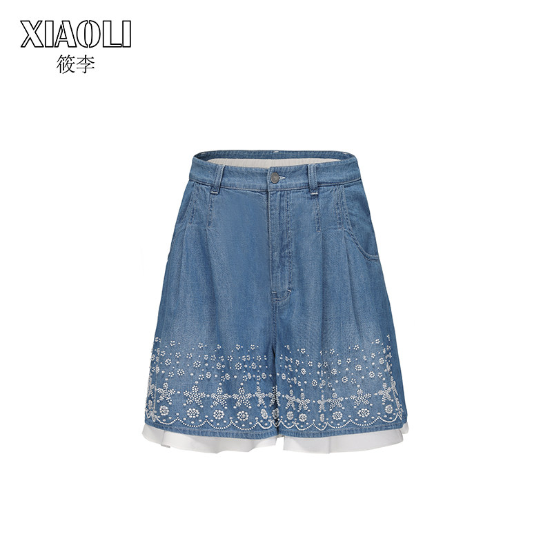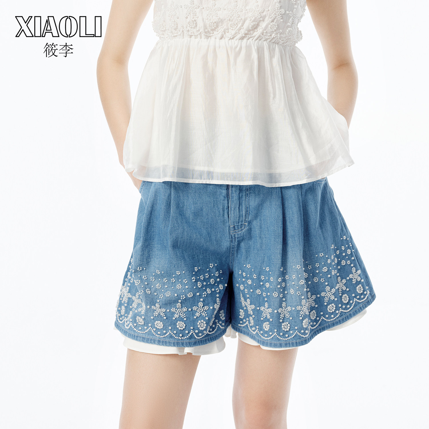 【XIAOLI筱李】胶囊系列设计师款钉珠花边牛仔短裤