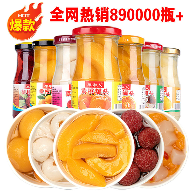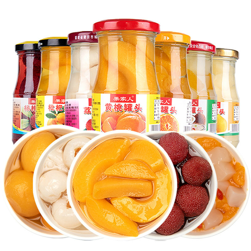 果家人水果罐头混合装糖水黄桃荔枝枇杷橘子杨梅梨248g整箱玻璃瓶