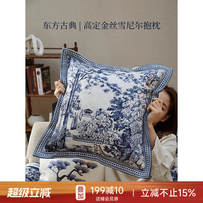 青花瓷法式复古客厅沙发卧室睡觉靠垫