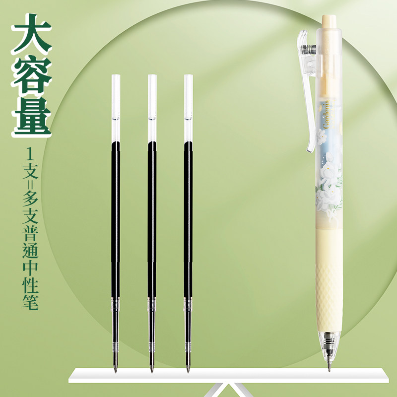 100支按动中性笔笔芯子弹头速干替换芯0.5写字粗笔心学生用按压式碳素水笔芯黑笔摁动批发文具用品送晨光水笔