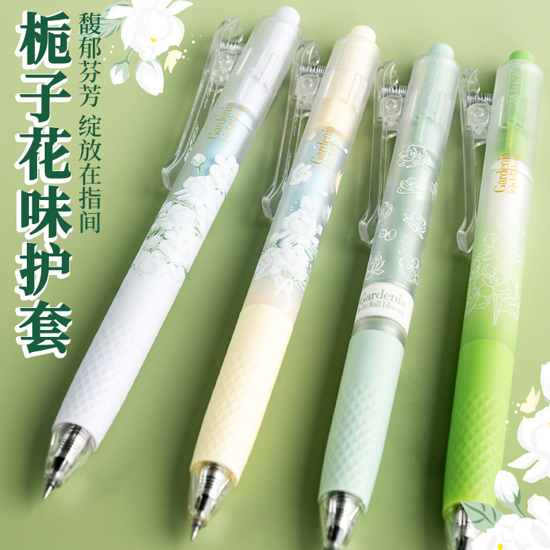 晨光栀子花开按动中性笔0.5黑色速干ST头大容量学生用考试刷题用自带栀子花香味大容量顺滑高颜值签字笔水笔