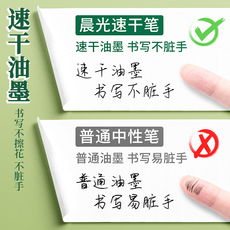 晨光按动中性笔黑色笔速干顺滑高颜值红蓝碳素笔考试办公用签字笔