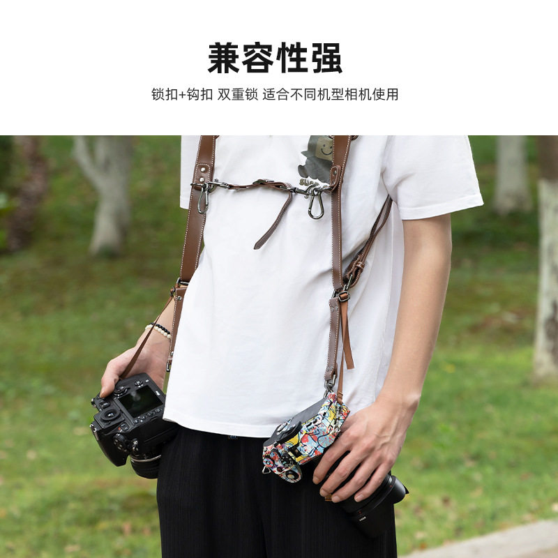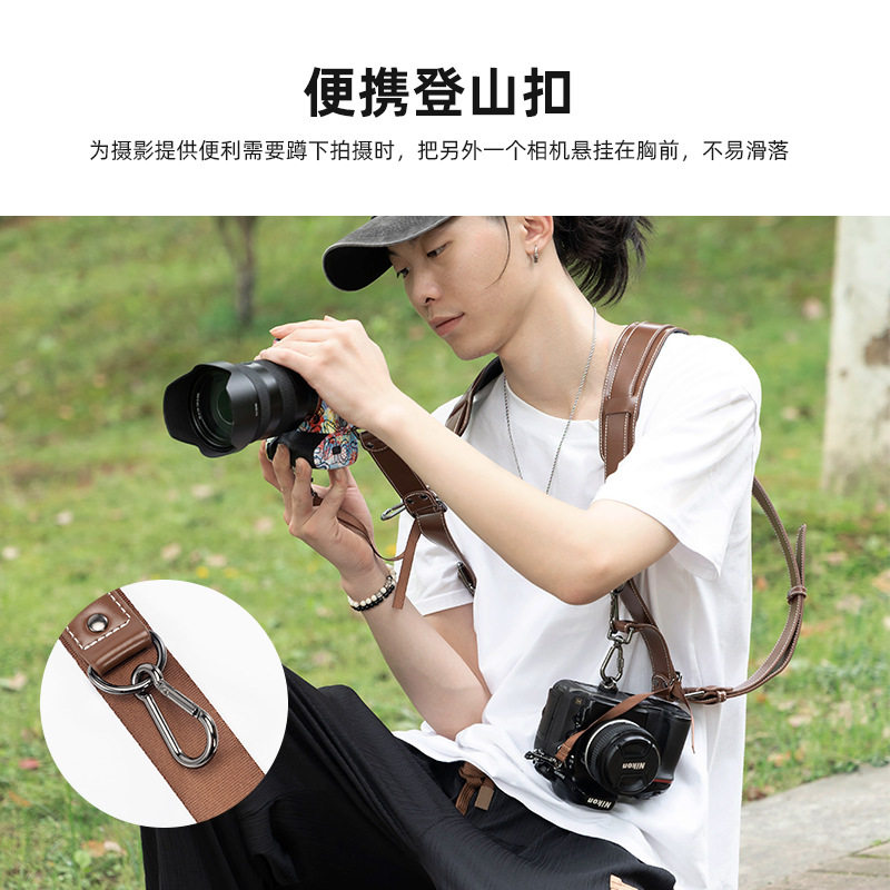 Cwatcun香港双相机背带 可调节多功能便捷单反相机真皮相机肩带