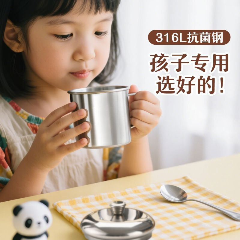加厚食品级316L不锈钢儿童水杯幼儿园宝宝杯子带盖茶缸子防摔口杯