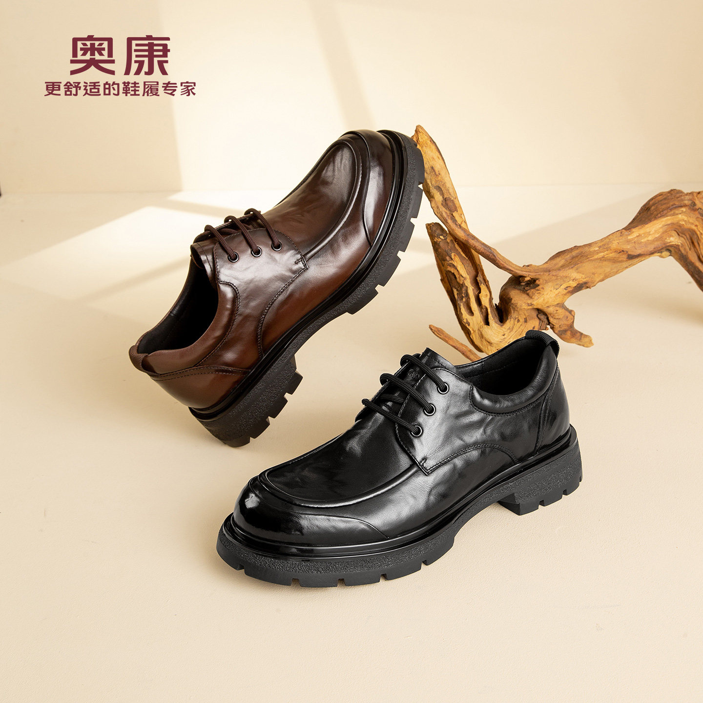 【内增高】奥康男鞋春秋季新款商务德比鞋男真皮舒适通勤男士皮鞋