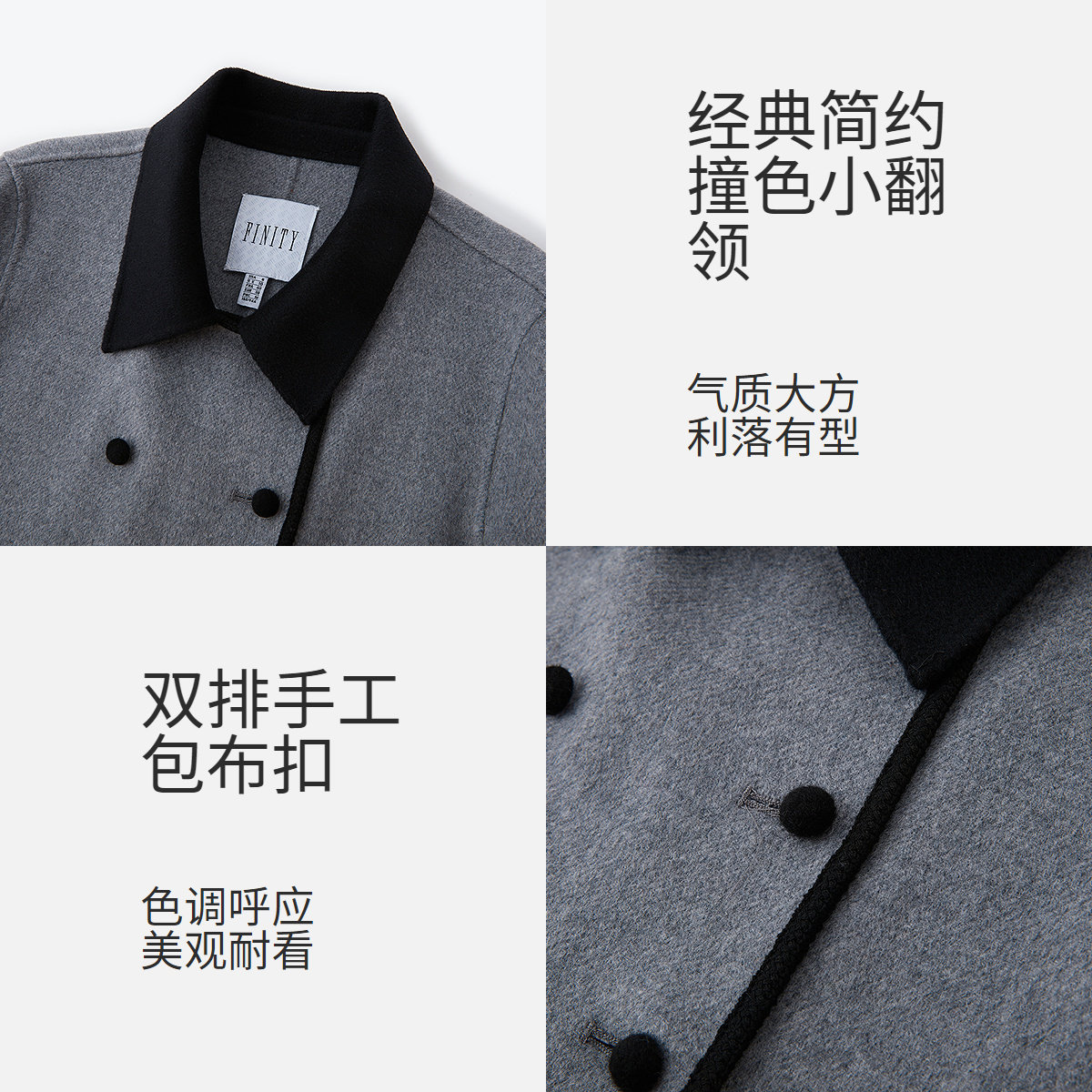 FINITY菲妮迪毛呢外套2025年冬季新款翻领双面呢中长款羊毛大衣女