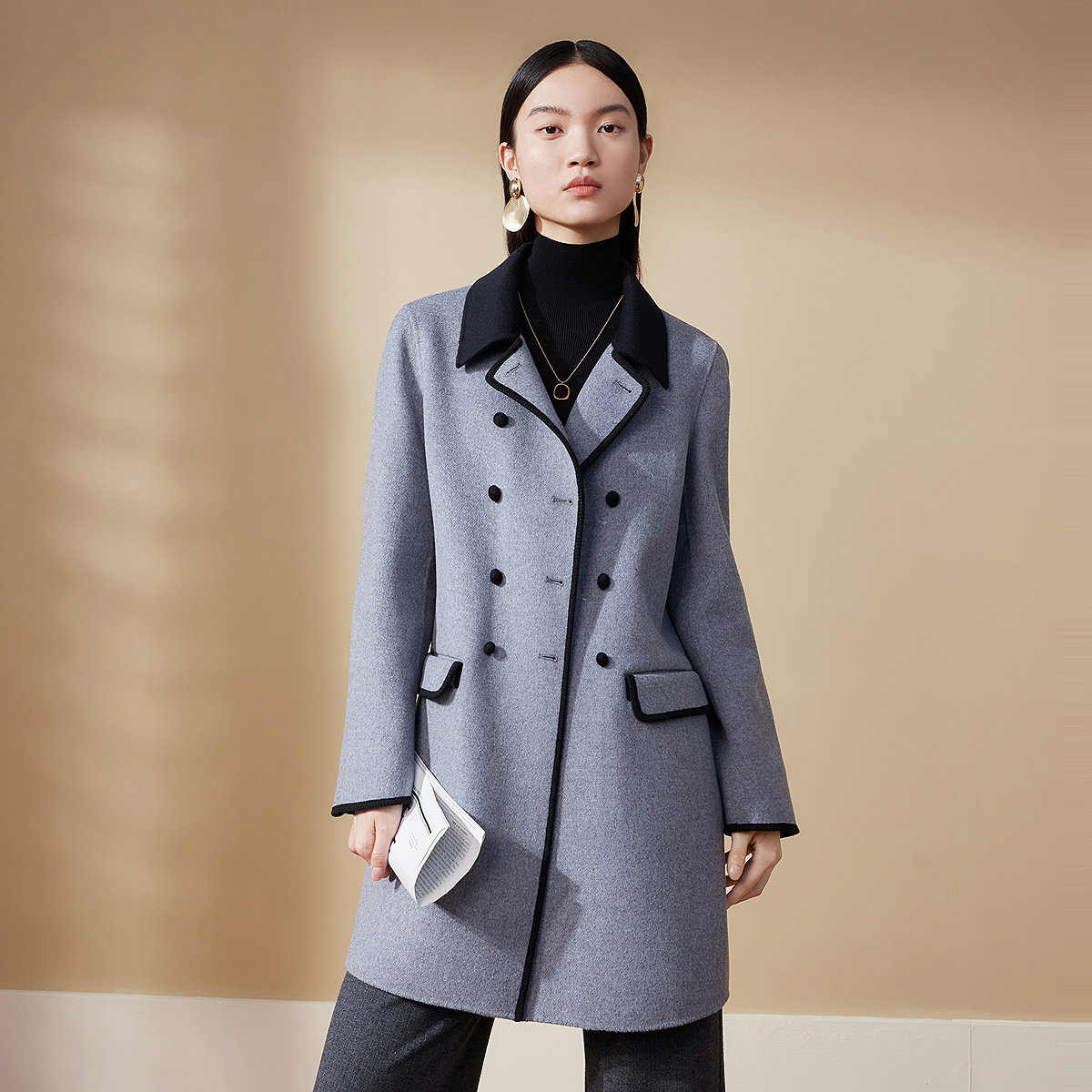 【专柜正版】高端双面羊毛羊绒毛呢大衣双排扣毛呢外套时尚洋xz8