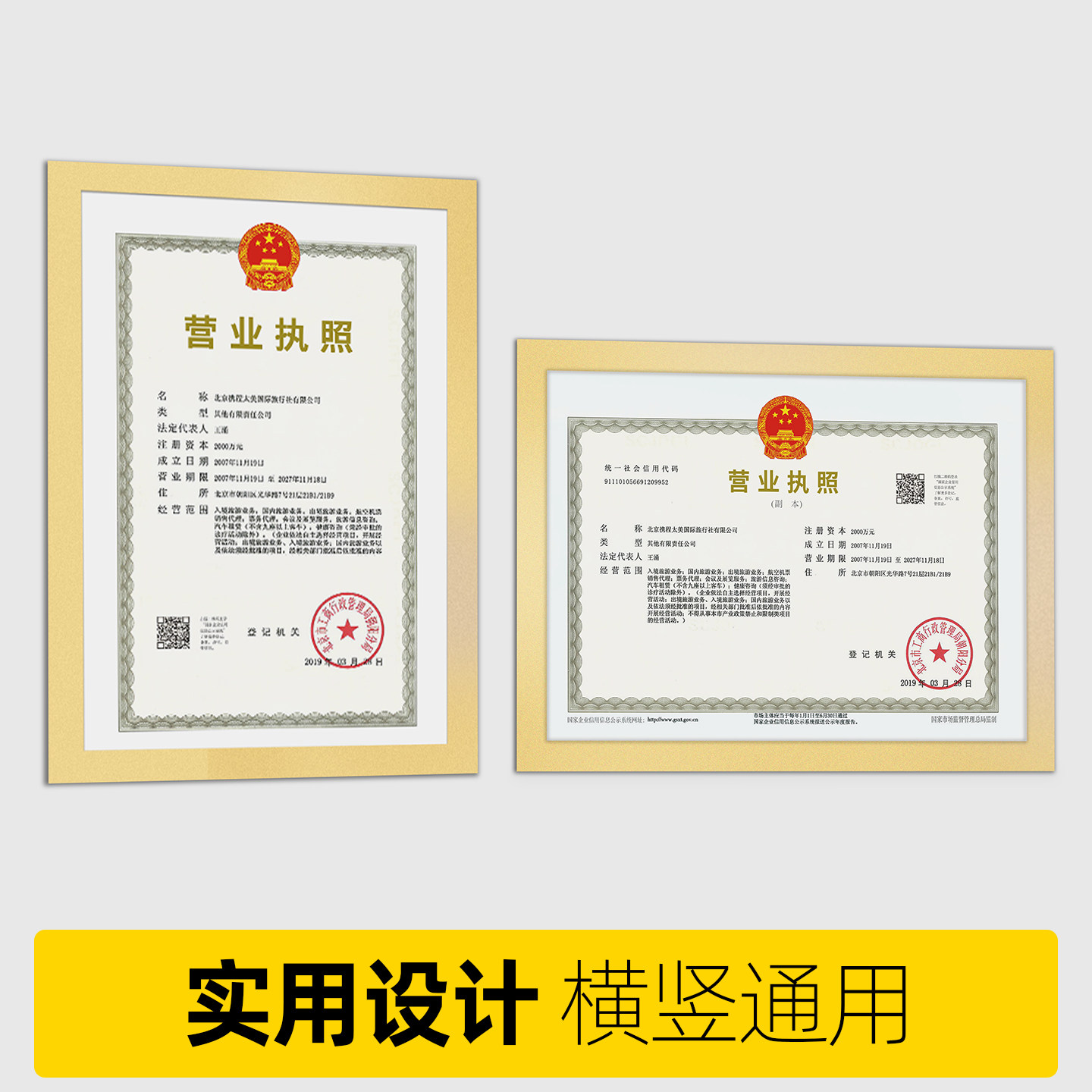 铝合金工商营业执照框卫生许可证正本a3证件展示相框执照框架挂墙