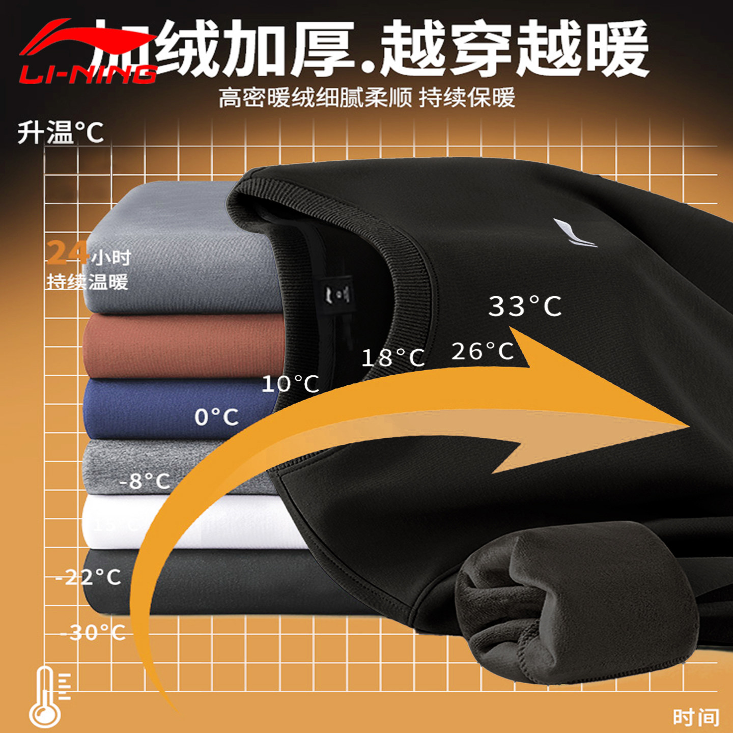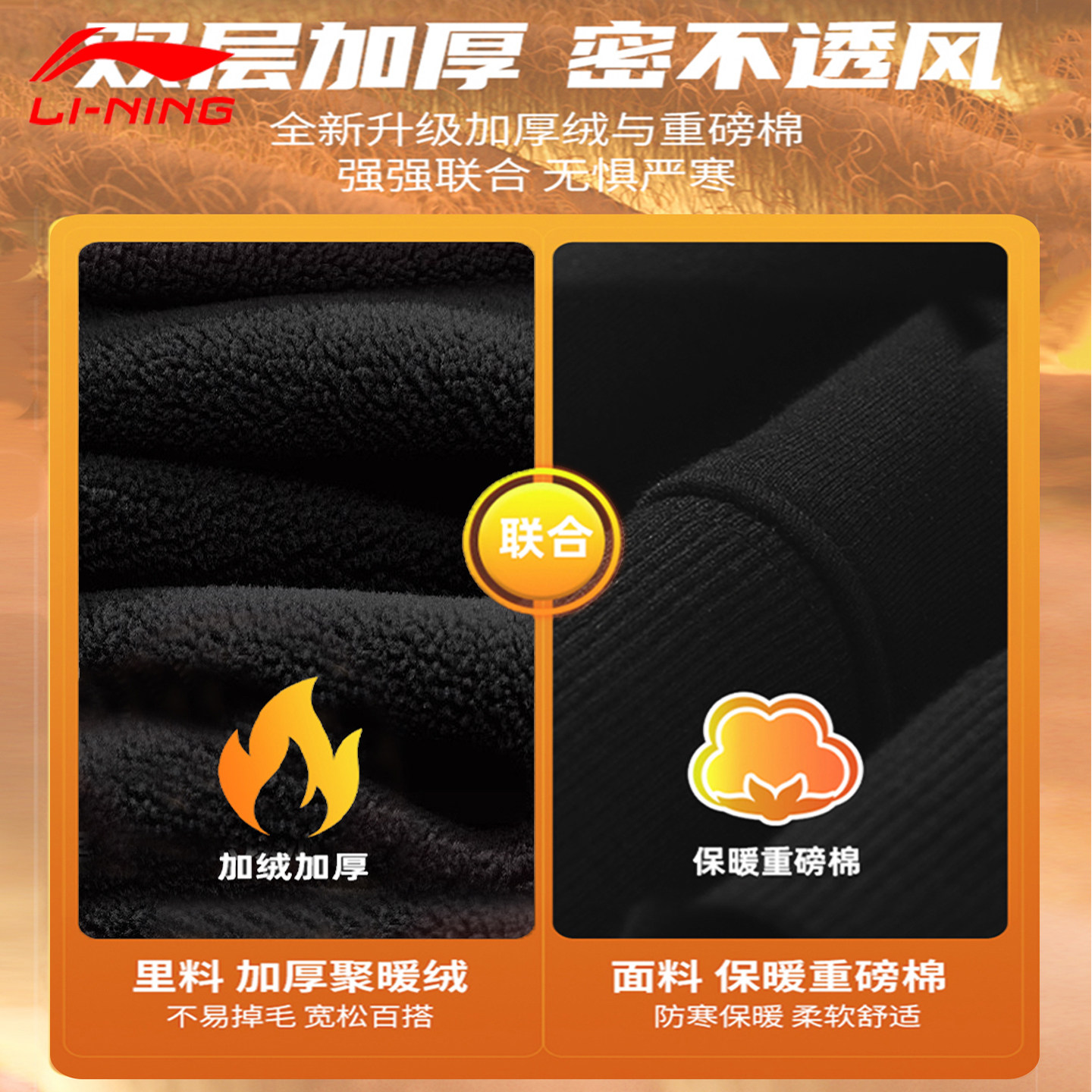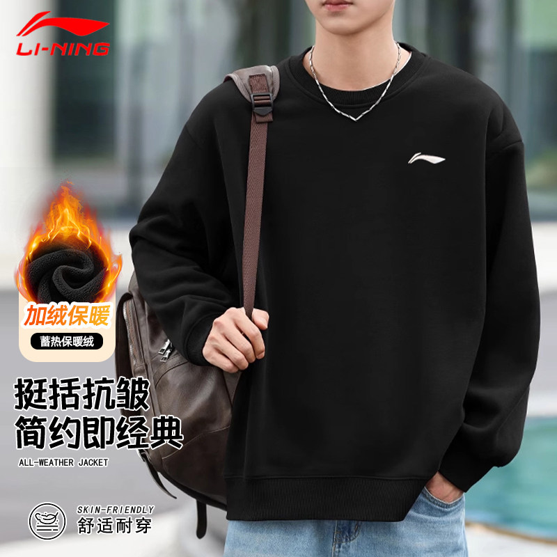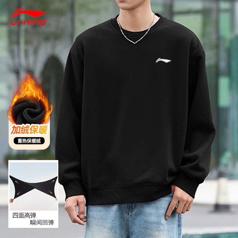 李宁运动卫衣男2025秋冬新款宽松圆领套头衫加绒加厚男士长袖上衣