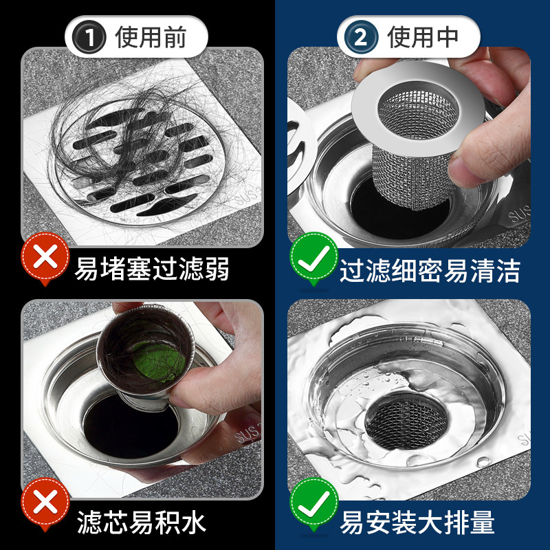 不锈钢地漏过滤网浴室卫生间下水道防堵塞神器毛发过滤网盖地漏盖