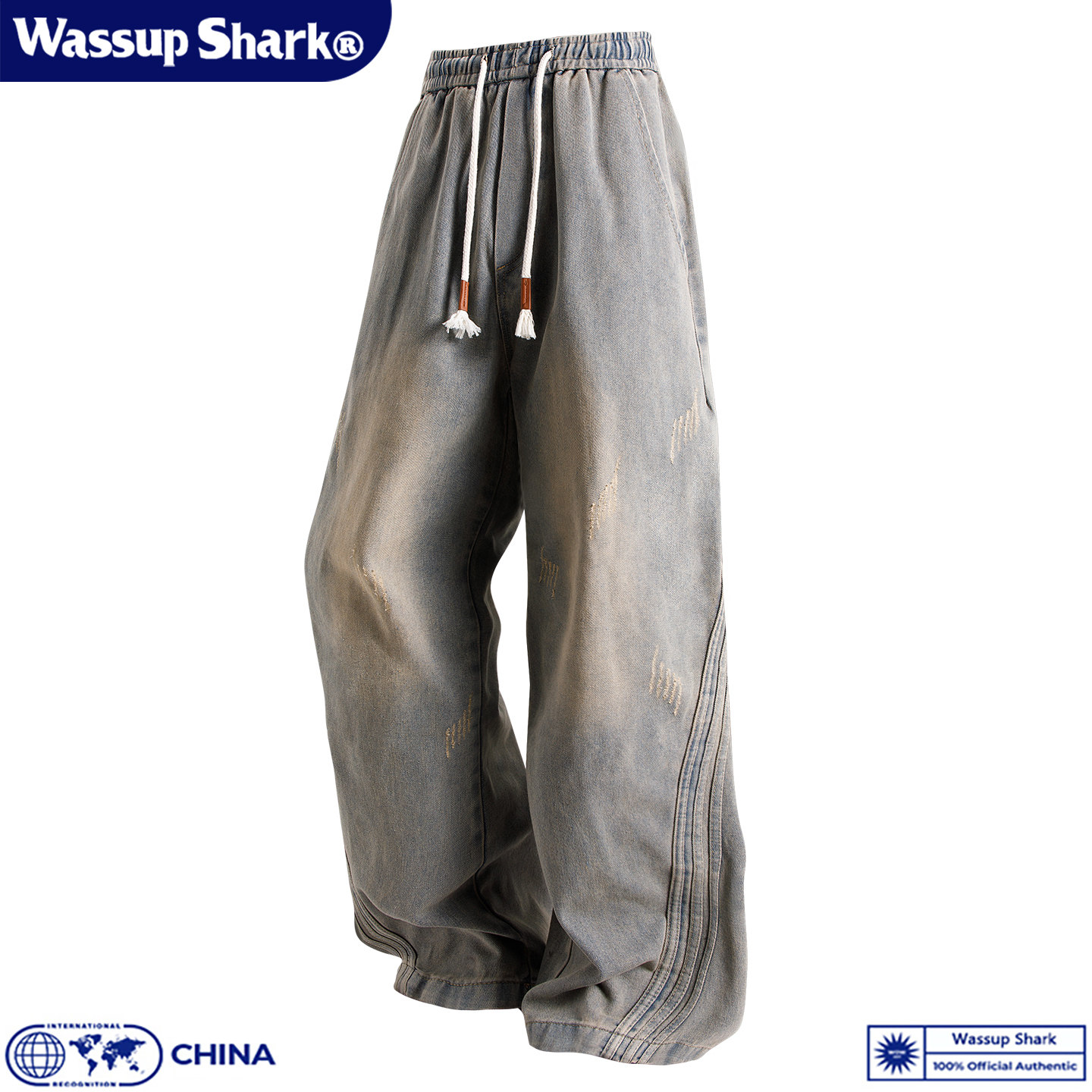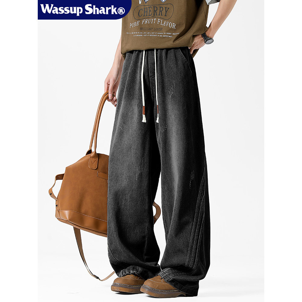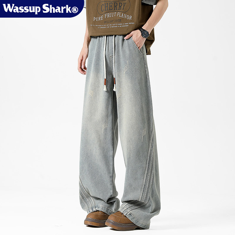 Wassup Shark水洗直筒阔腿牛仔裤男款秋季美式休闲宽松痞帅长裤潮