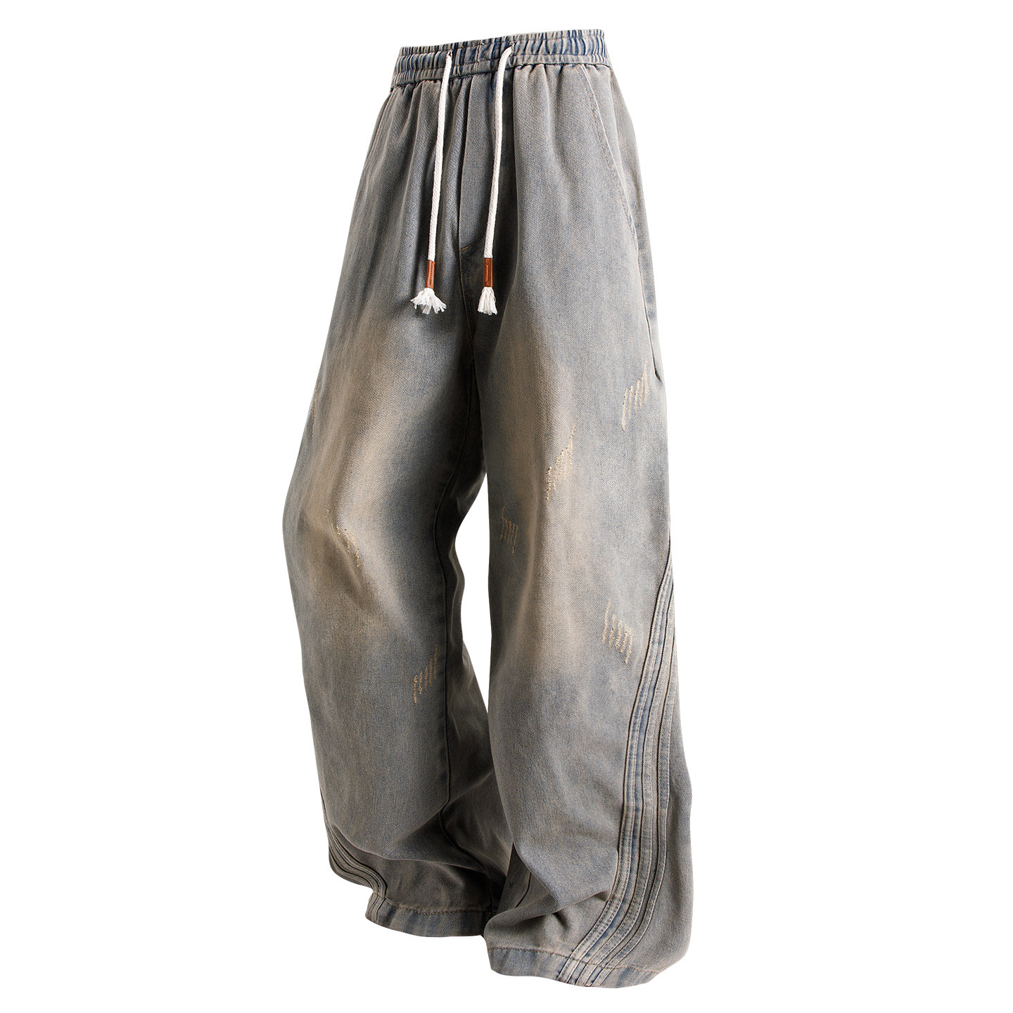 阔腿牛仔裤男士2025春秋新款美式复古宽松大码冬季休闲直筒裤子男