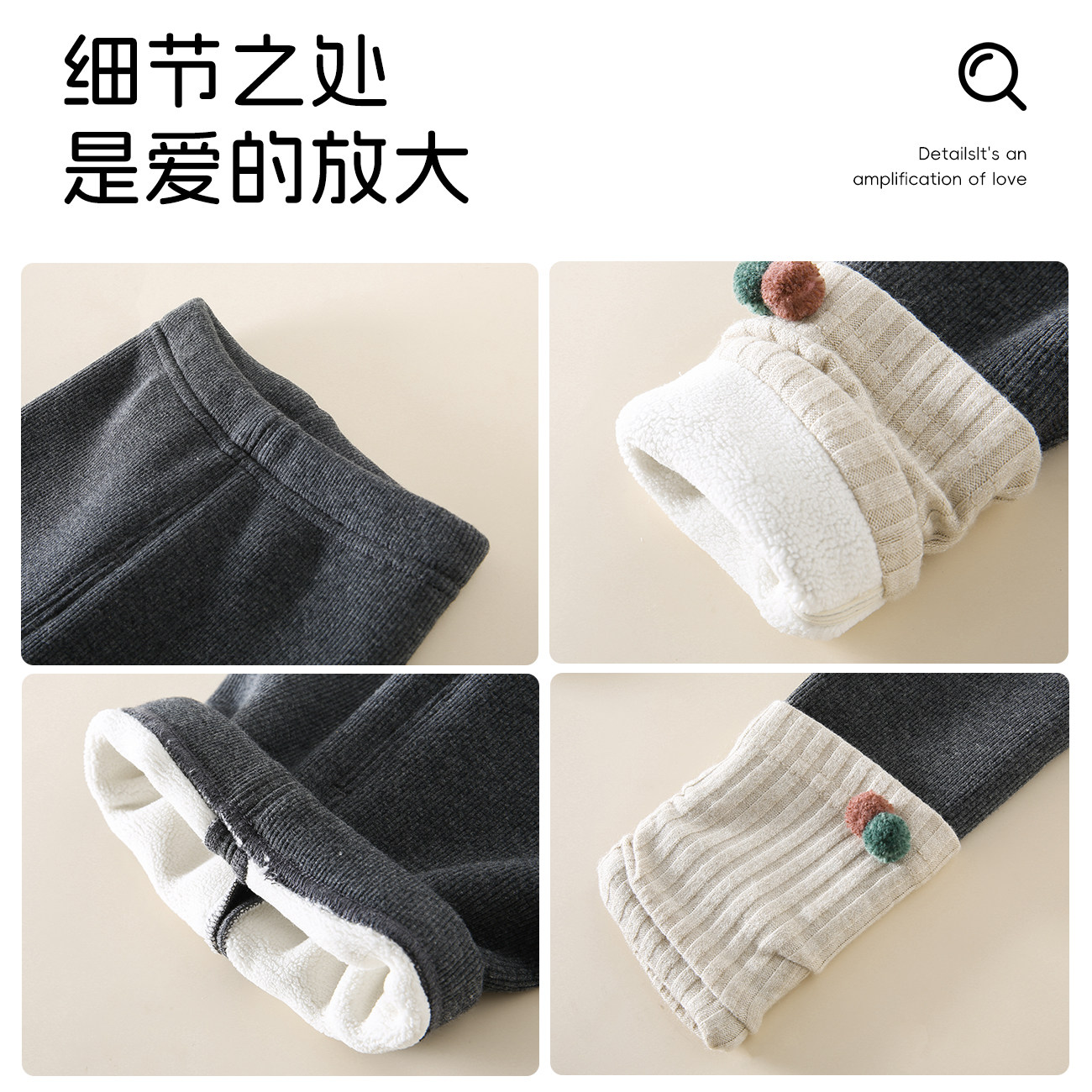 婧麒儿童裤子秋冬款羊毛蚕丝加厚保暖裤男女童宝宝长裤冬季打底裤