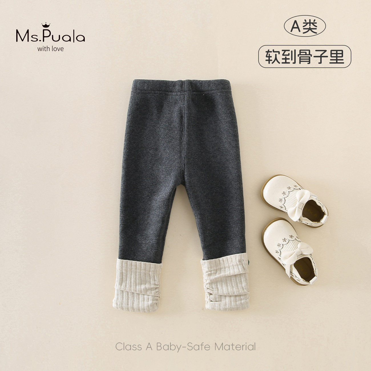 打底裤女童Ms.Puala宝宝加绒秋冬童装婴幼儿休闲裤打底长裤灰色