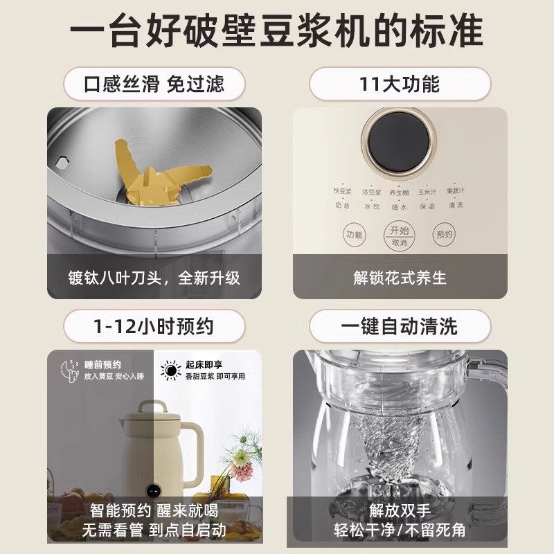 德国品质静音豆浆机家用小型多功能全自动加热免过滤破壁机果汁机