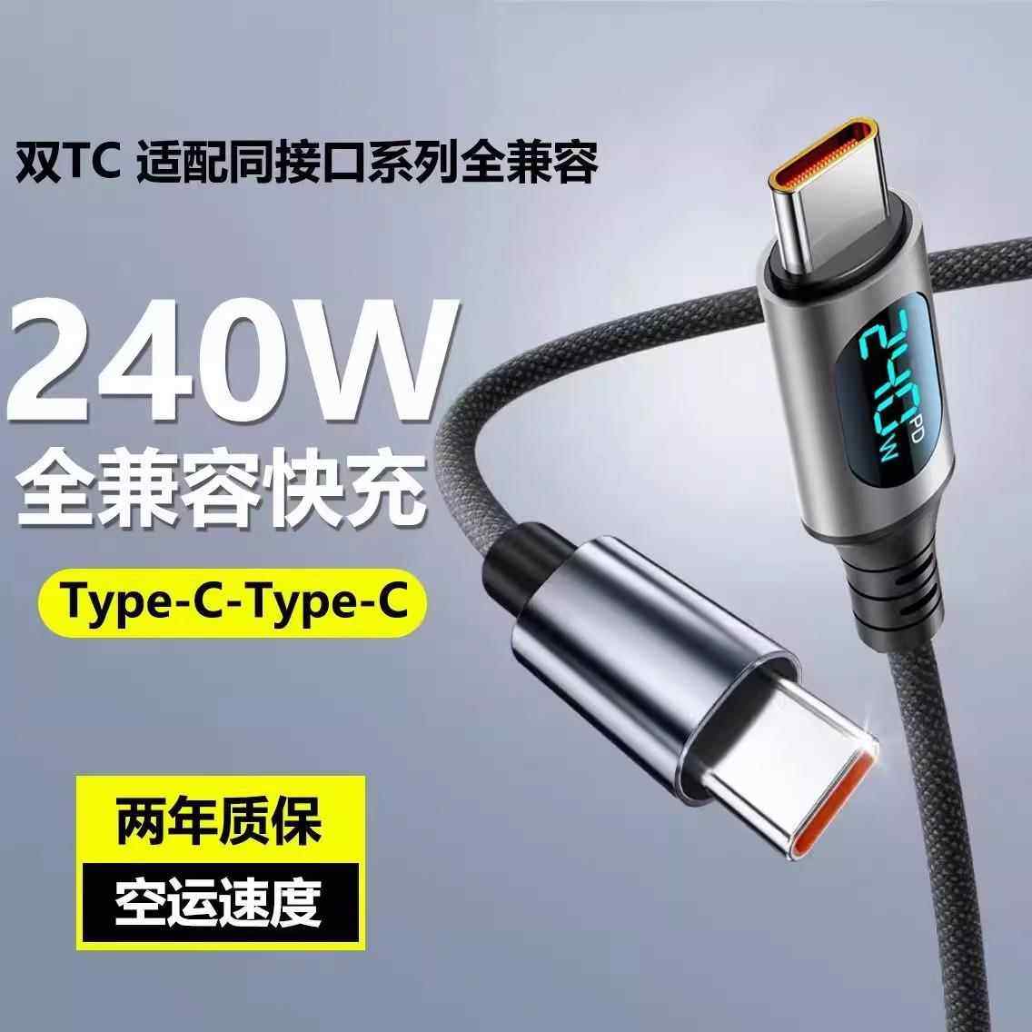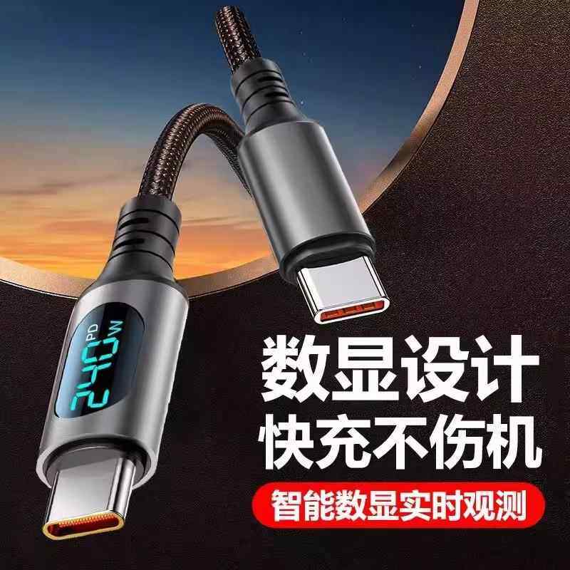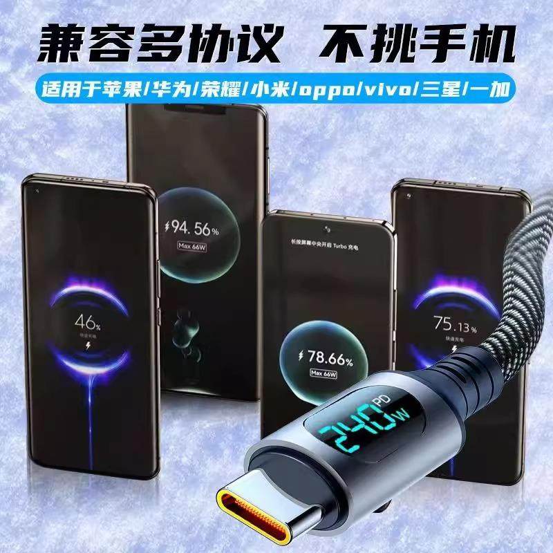 新款Type-C数显数据线240W超级快充充电器加长华为70mate60pro小米VIVOPP荣耀v50通用2米手机编织闪充电线