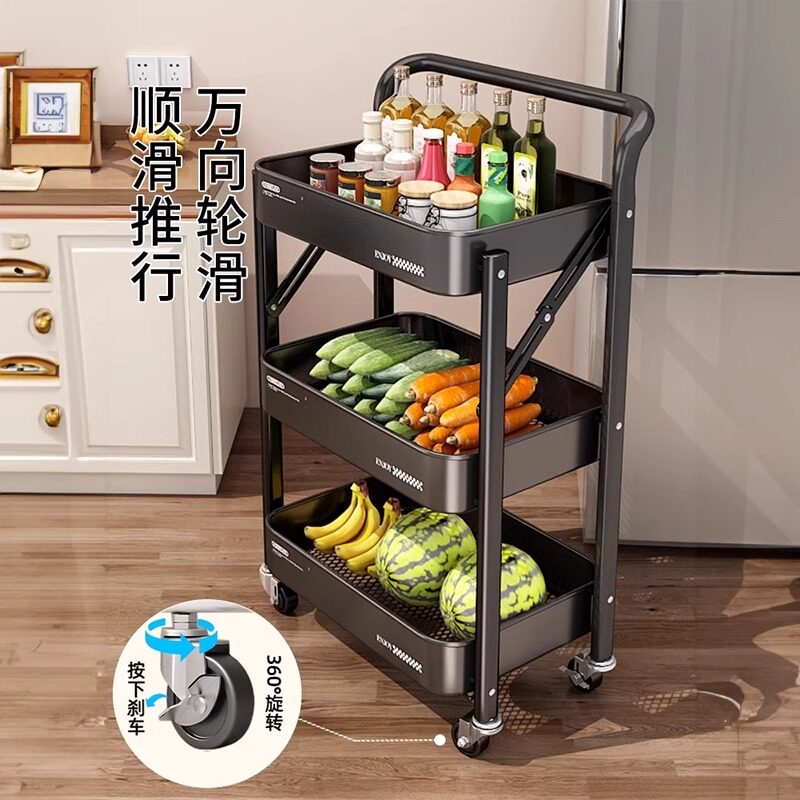 厨房置物架落地多层可折叠省空间收纳架简易多层大容量果蔬菜篮子