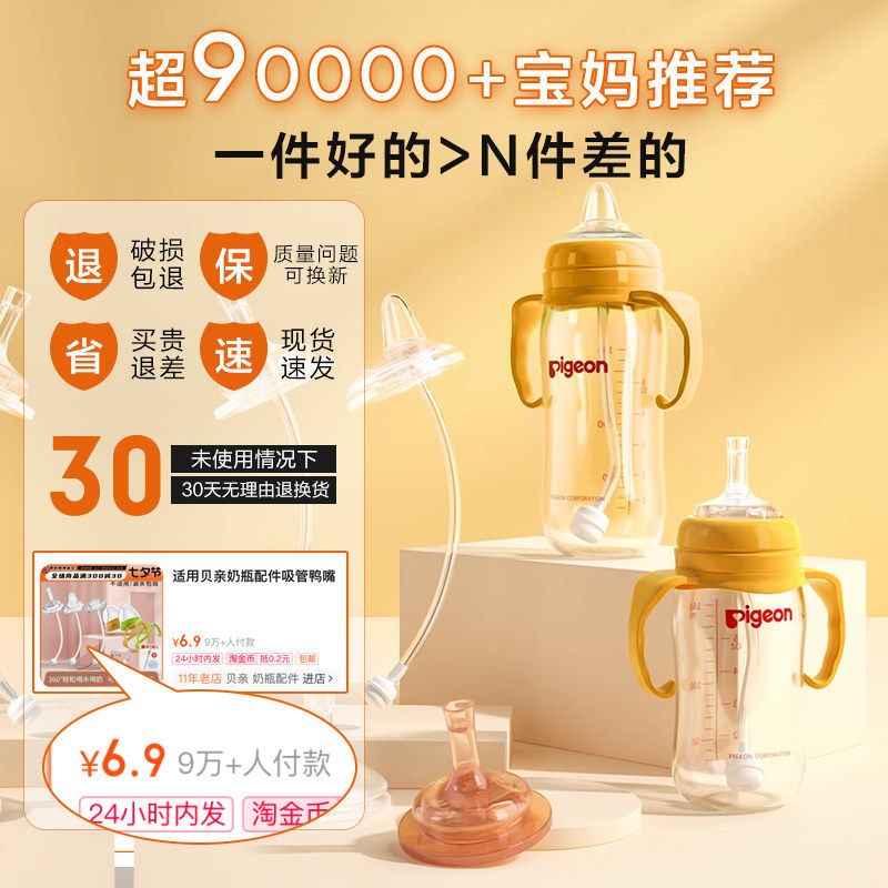 适用贝亲奶瓶配件吸管鸭嘴奶嘴重力球手柄宽口径通用学饮水杯转换