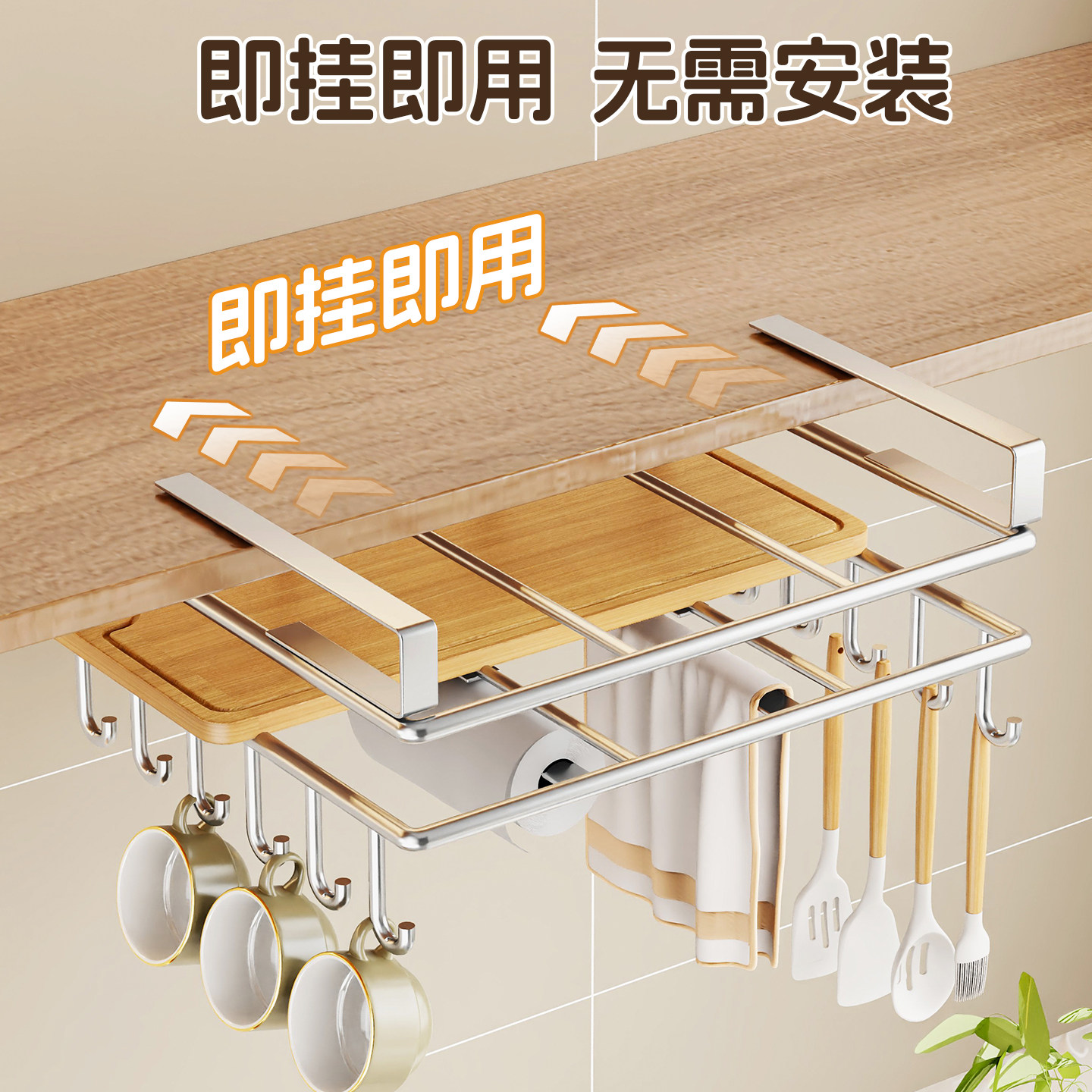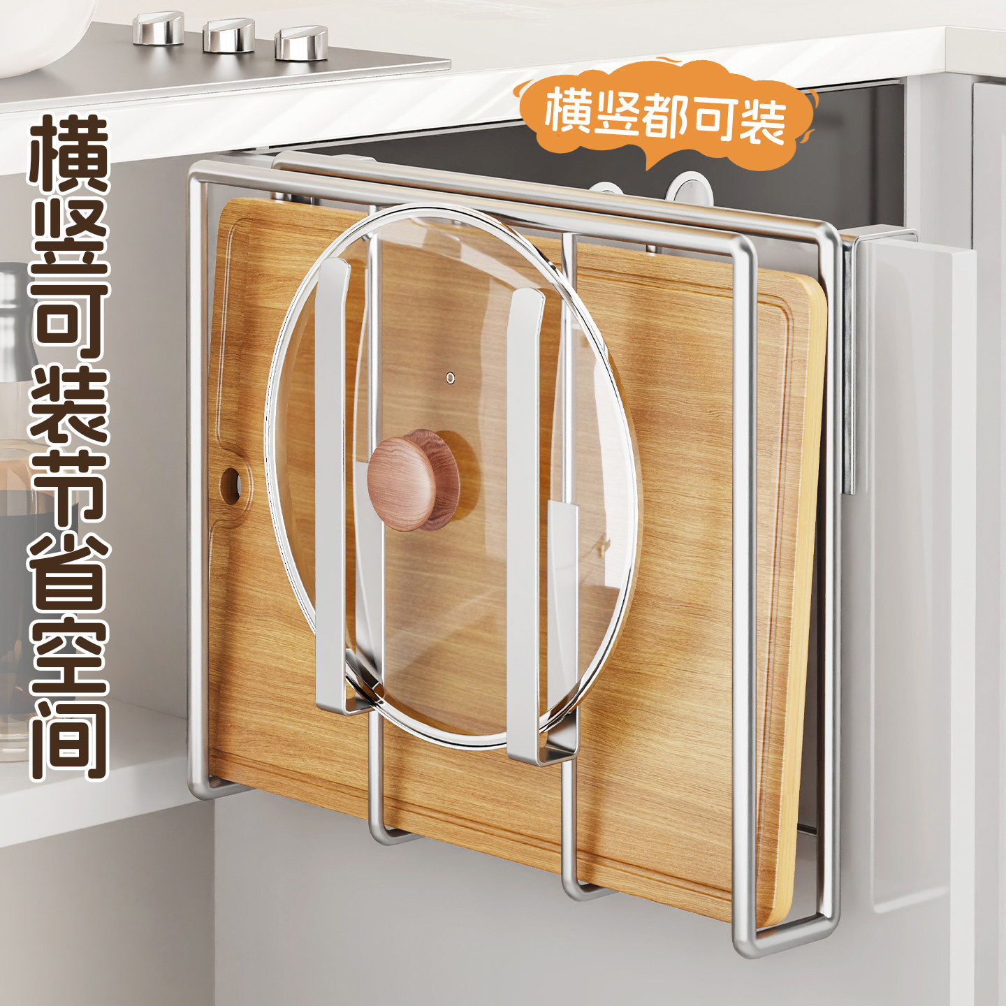 不锈钢橱柜下挂置物架锅盖案板砧板放置架多功能厨房用品收纳挂钩