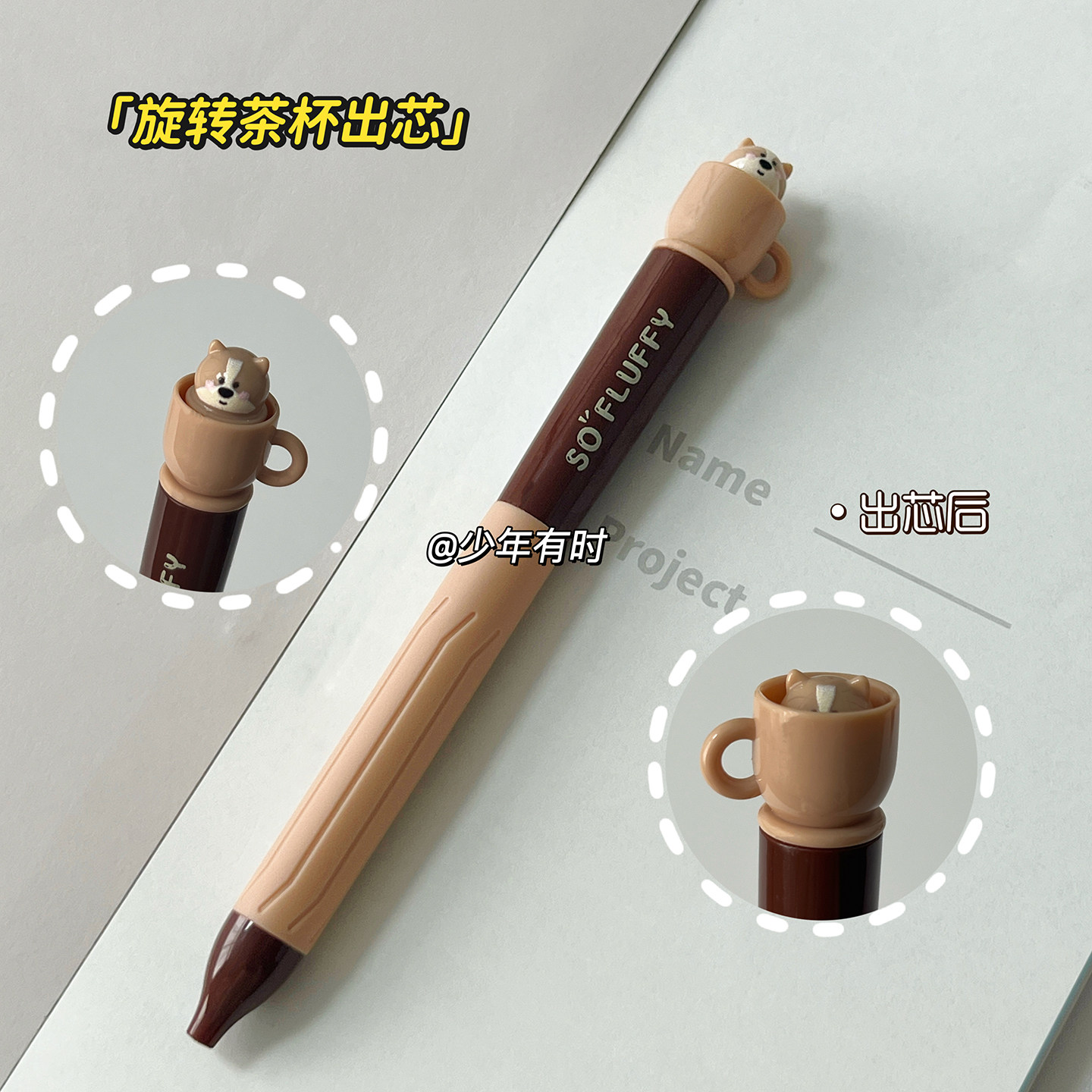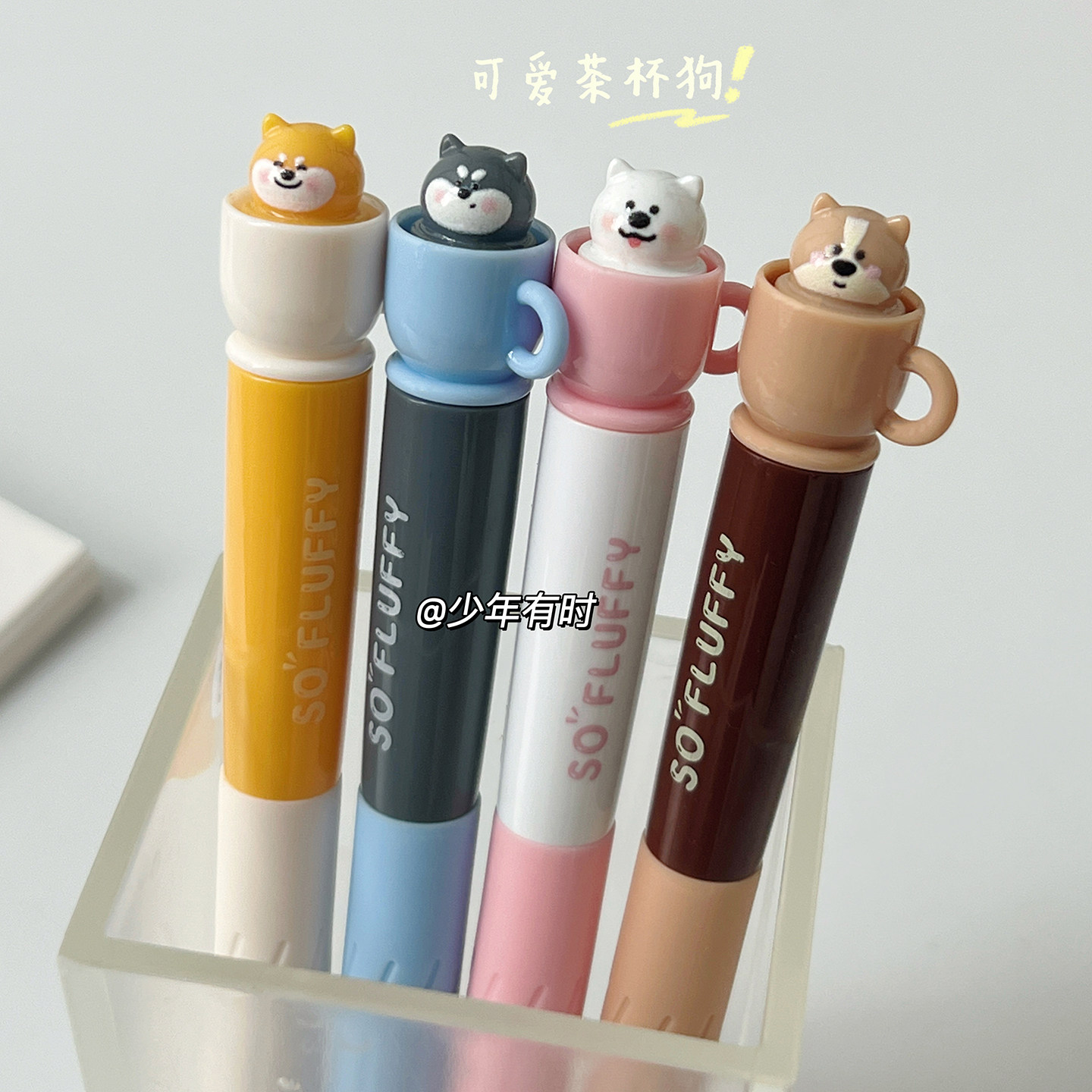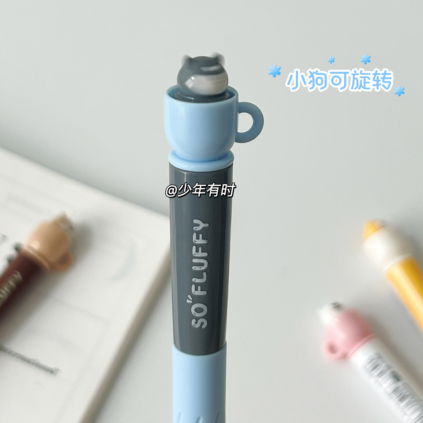 慕乐茶杯狗旋转中性笔ins风高颜值学生可爱考试刷题笔顺滑ST黑笔