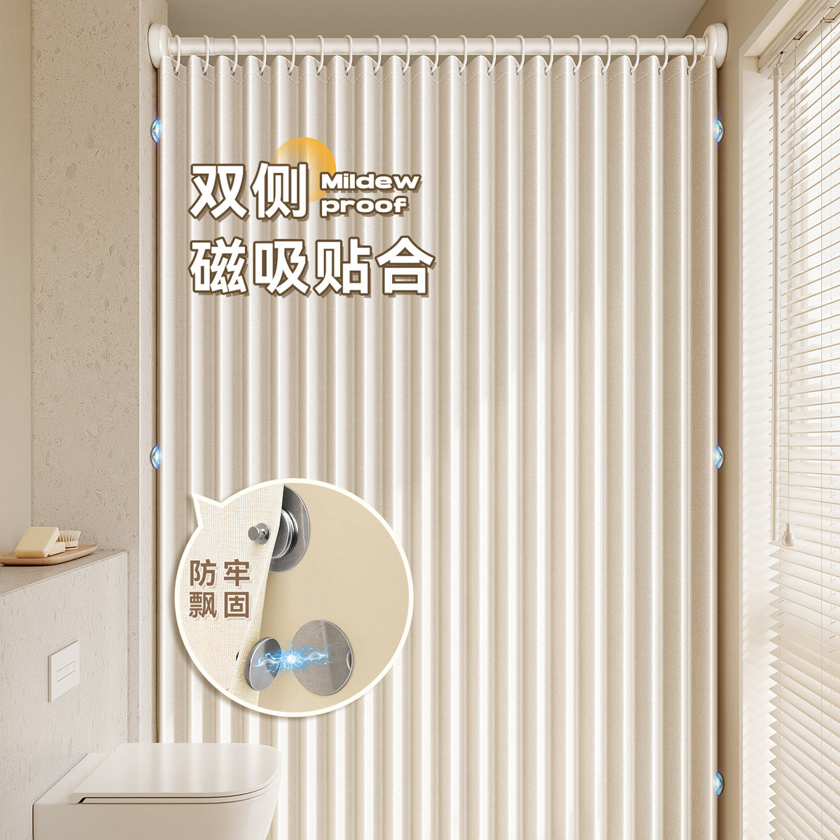 厨房隔断门帘2026新款免打孔高档防水防油烟隔断帘卧室浴室遮挡帘