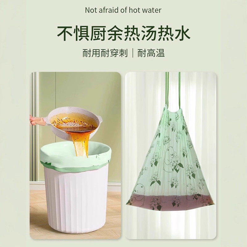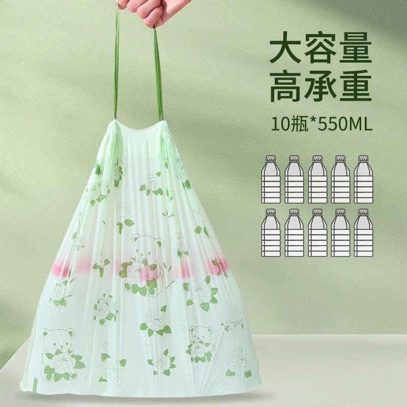 山茶花免撕垃圾袋加厚家用手提式抽绳厨房大号塑料袋耐用印花收口