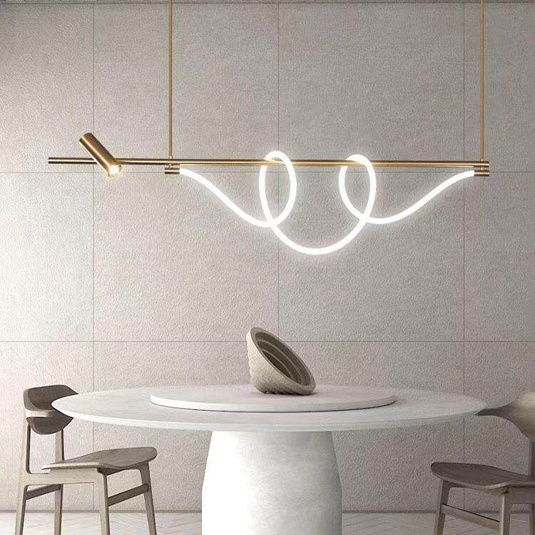 北欧创意个性设计师软装轻奢长条极简艺术餐厅吧台装饰LED吊灯