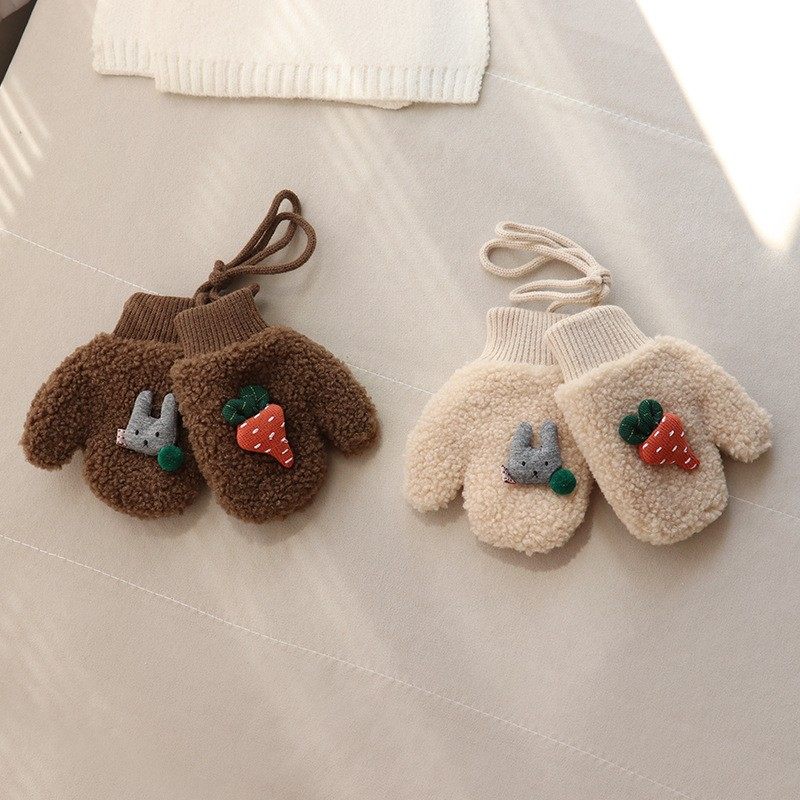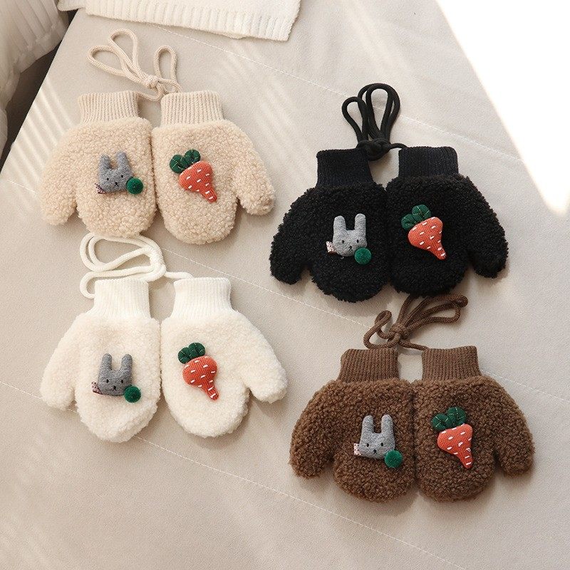 宝宝手套秋冬季男女童可爱保暖防风连指加厚儿童韩版百搭加绒包套