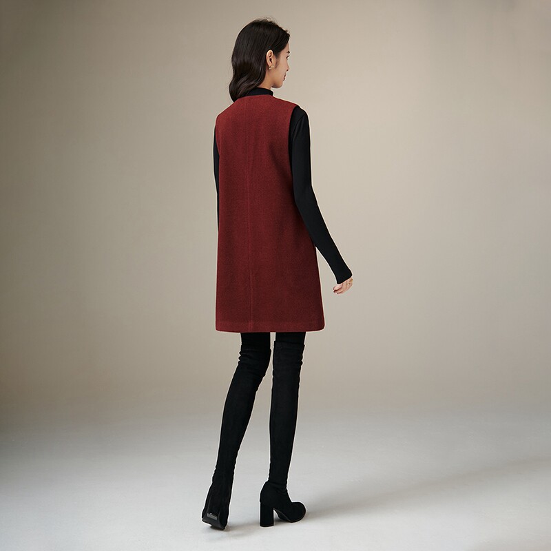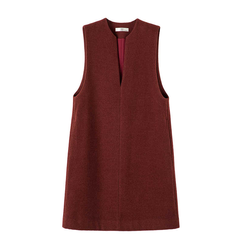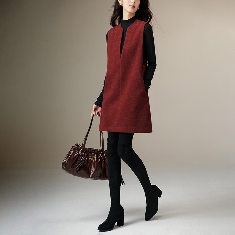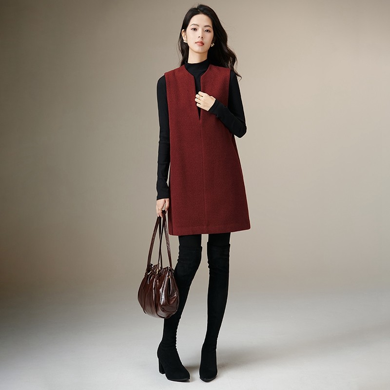 晚白2025年秋冬新款时尚气质新年复古红V领裙子含羊毛无袖连衣裙
