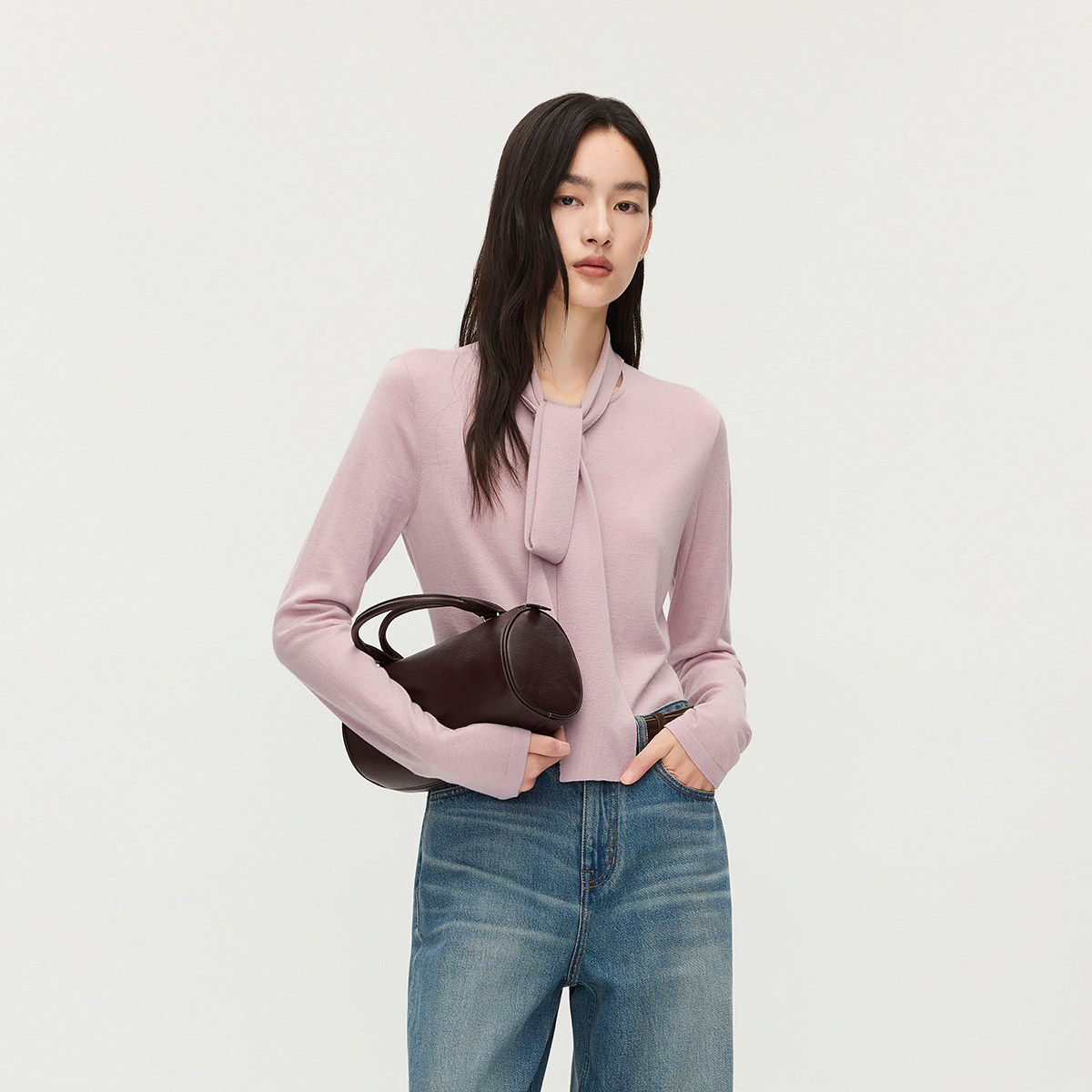 【季末折扣】欧时力羊毛飘带套头针织毛衣上衣设计感2025秋冬新品