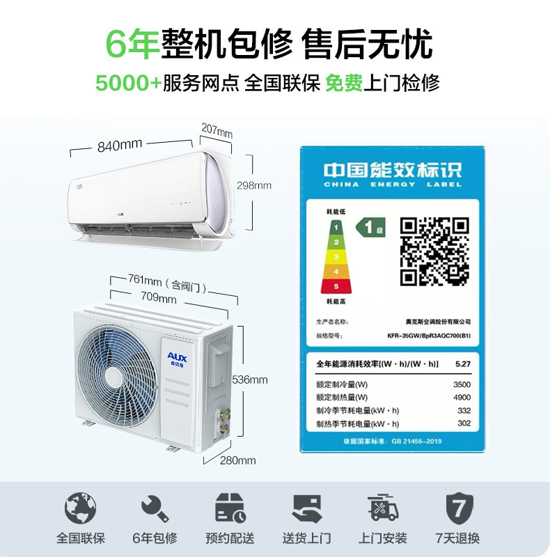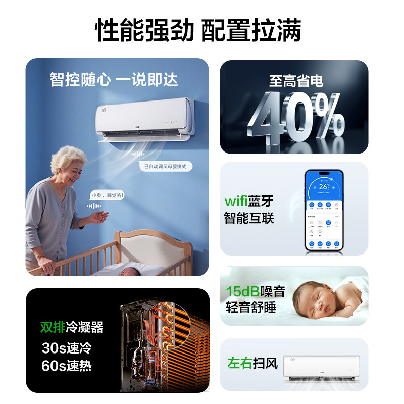 奥克斯奥知音空调一级能效大1.5匹挂机家用卧室沁音新品官方店