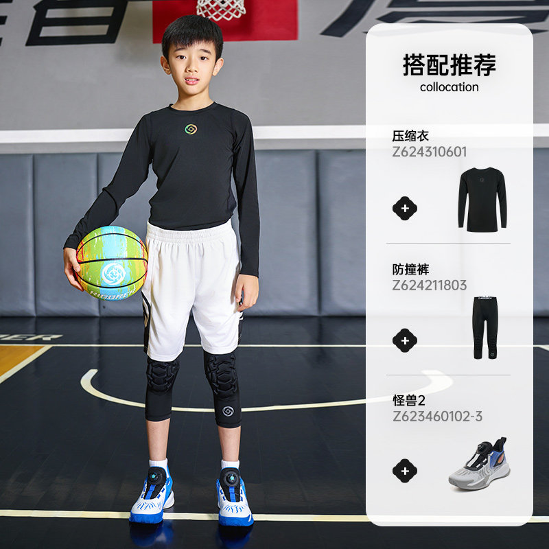 准者儿童七分紧身长裤秋冬新款学生篮球训练运动弹力打底压缩短裤