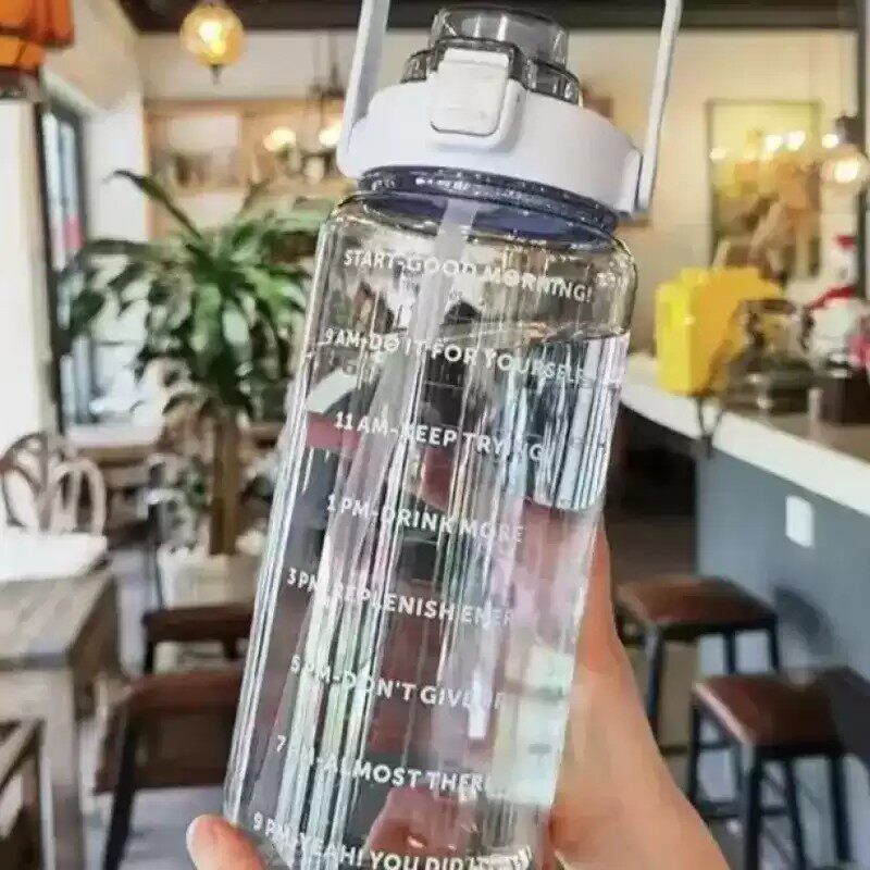 大容量水杯夏季运动2000ml刻度吸管塑料杯子耐高温水瓶男女大水壶
