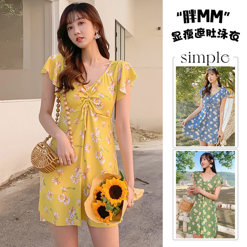 大码泳装女款胖MM遮肉显瘦裙式游泳衣时尚保守连体妈妈泳衣批发