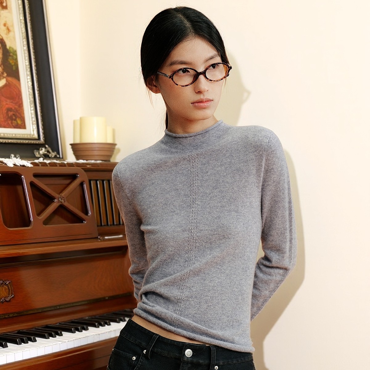 MESUX米岫25冬迪木尔风羊绒无缝全成型多领型百搭打底针织羊绒衫