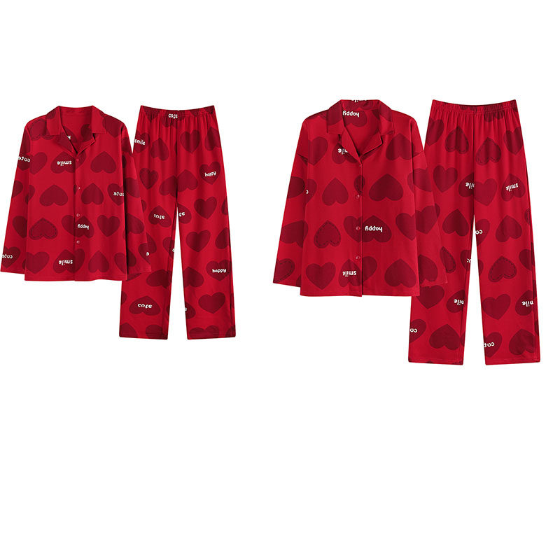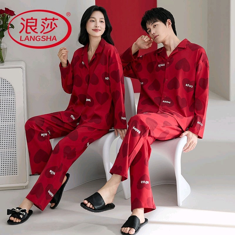 浪莎情侣睡衣春秋季纯棉长袖长裤红色结婚韩式家居服套装2025新款