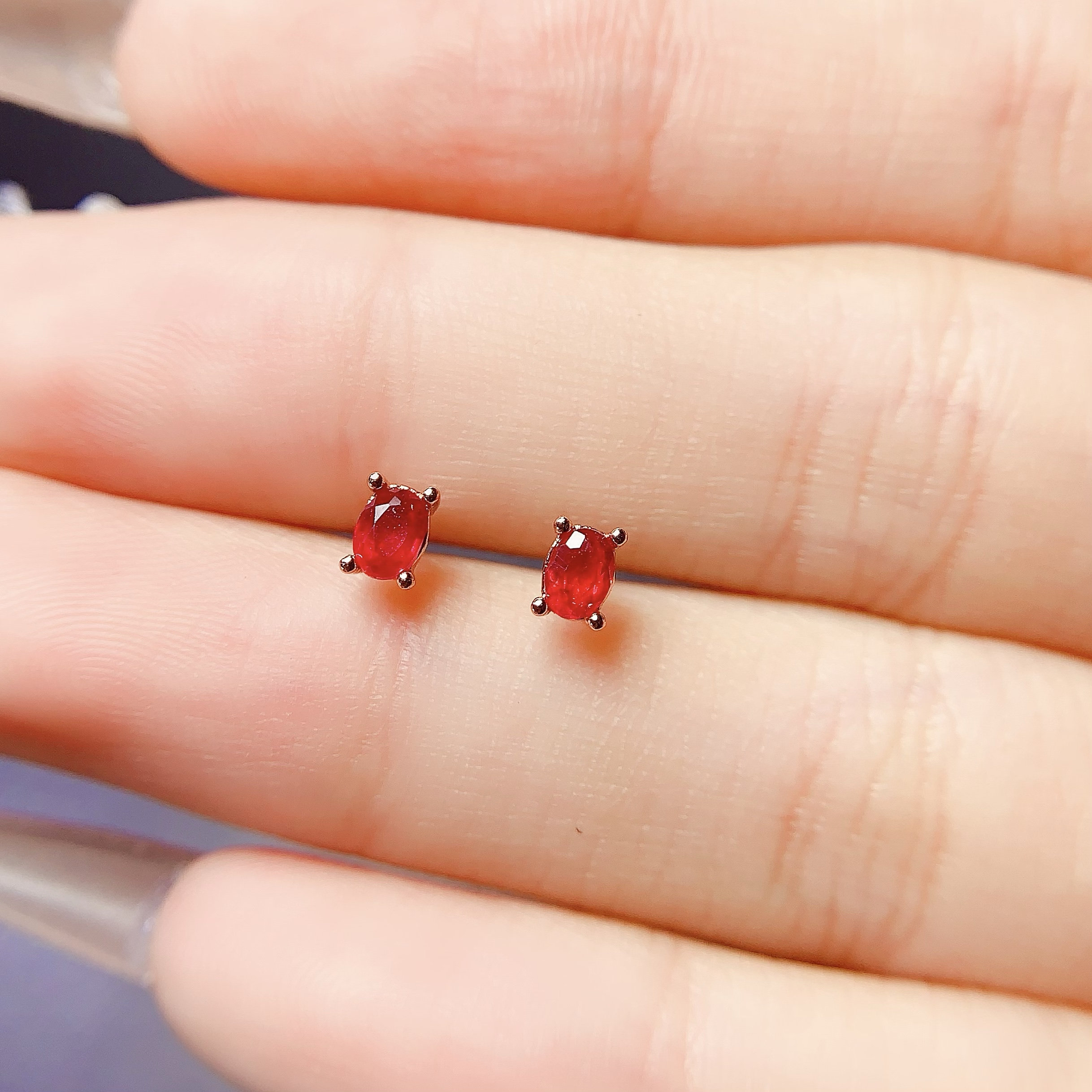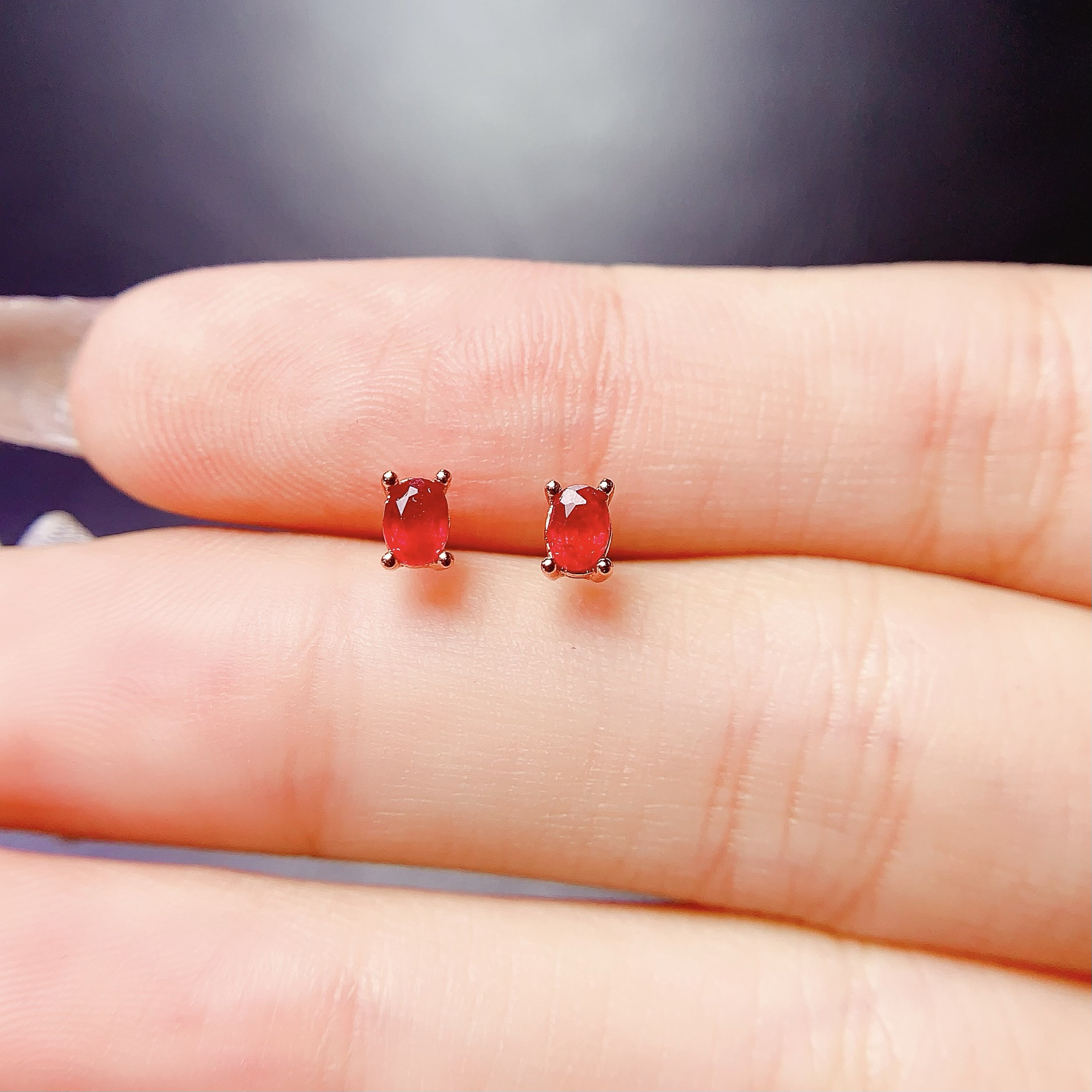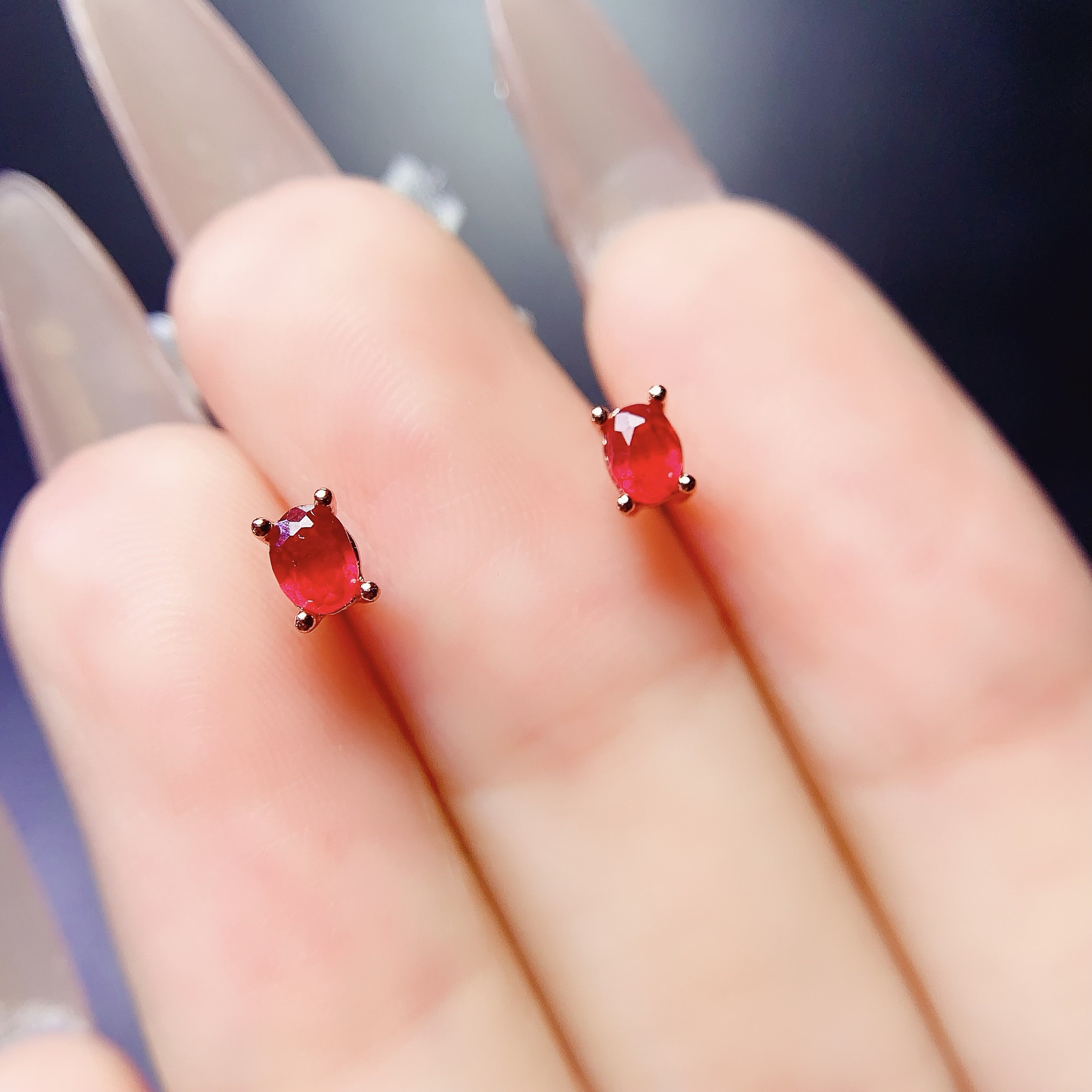 缅甸红宝石耳钉出货,鸽血红戒面3*4mm情人节礼物