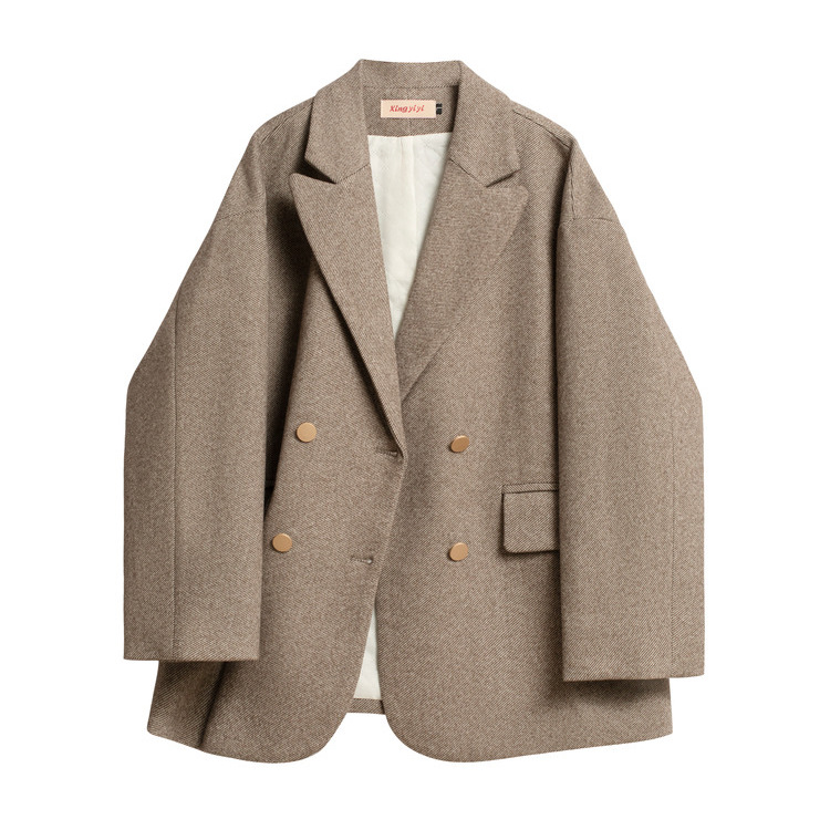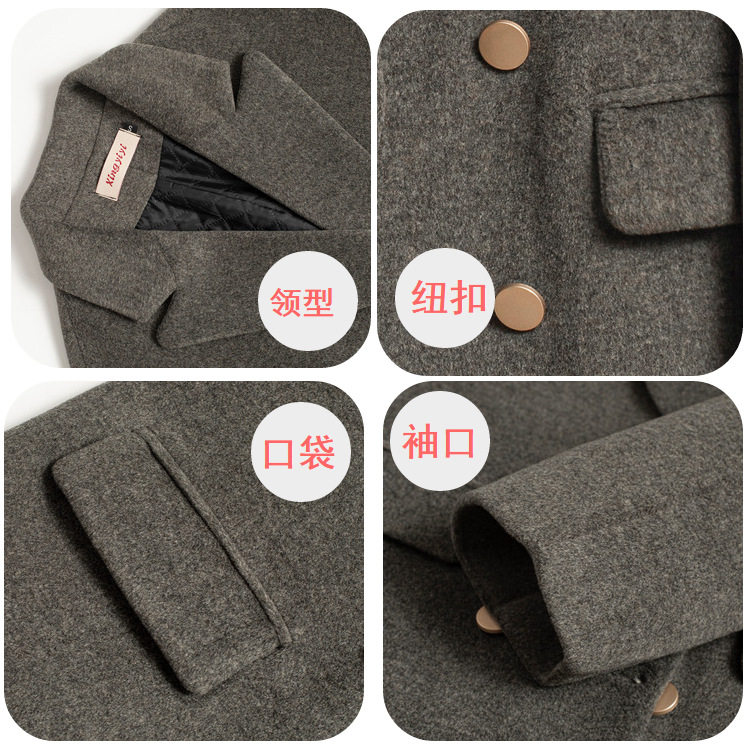 灰色短款西装呢子大衣女秋冬季宽松新款小个子高级感加厚毛呢外套