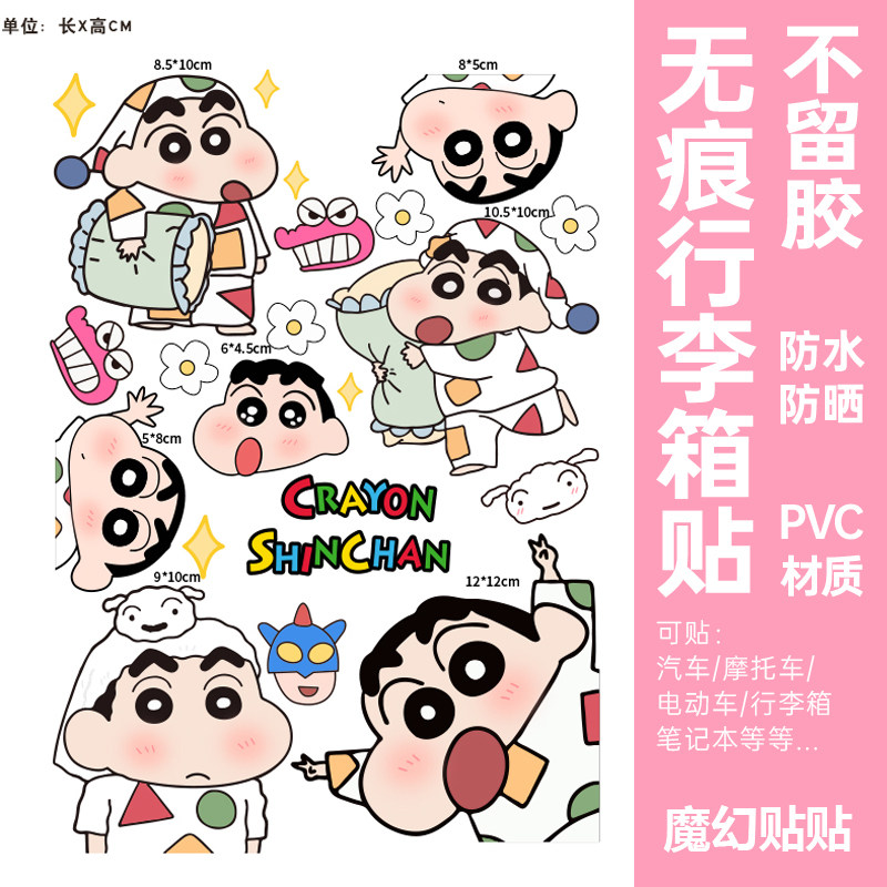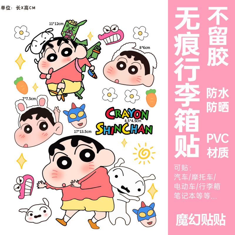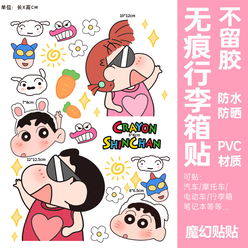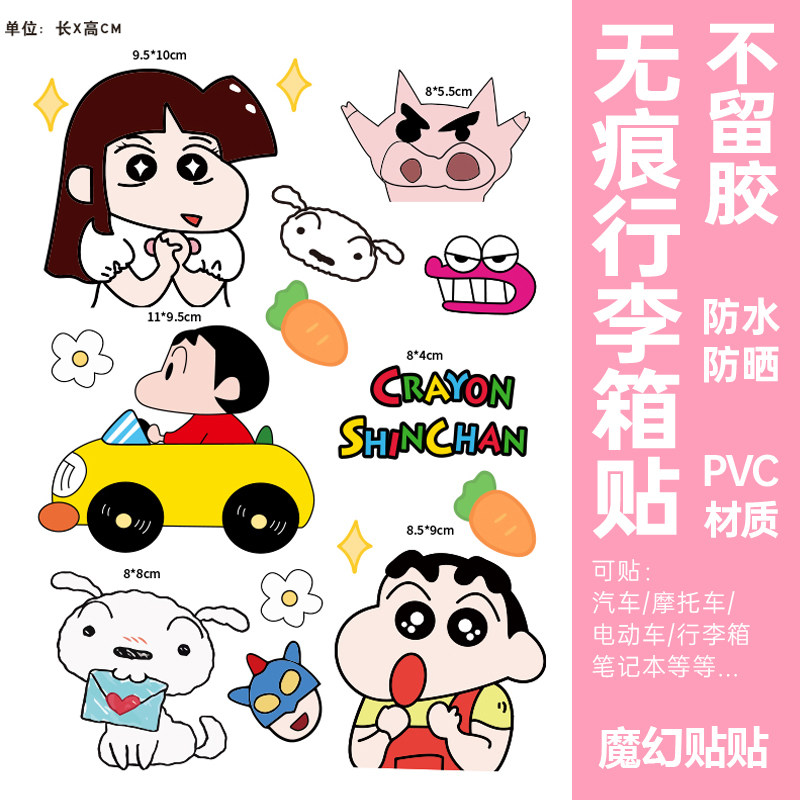 蜡笔小新行李箱贴纸防水不留胶卡通可爱旅行箱拉杆箱改造装饰贴纸