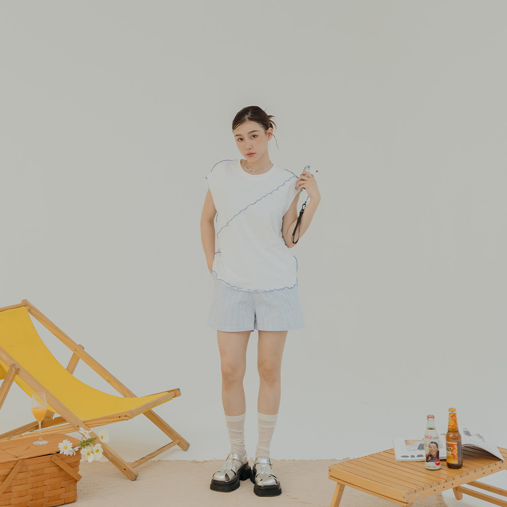 QUEENSHOP 2025春夏新品女装凉感木耳边撞色无袖背心01150452