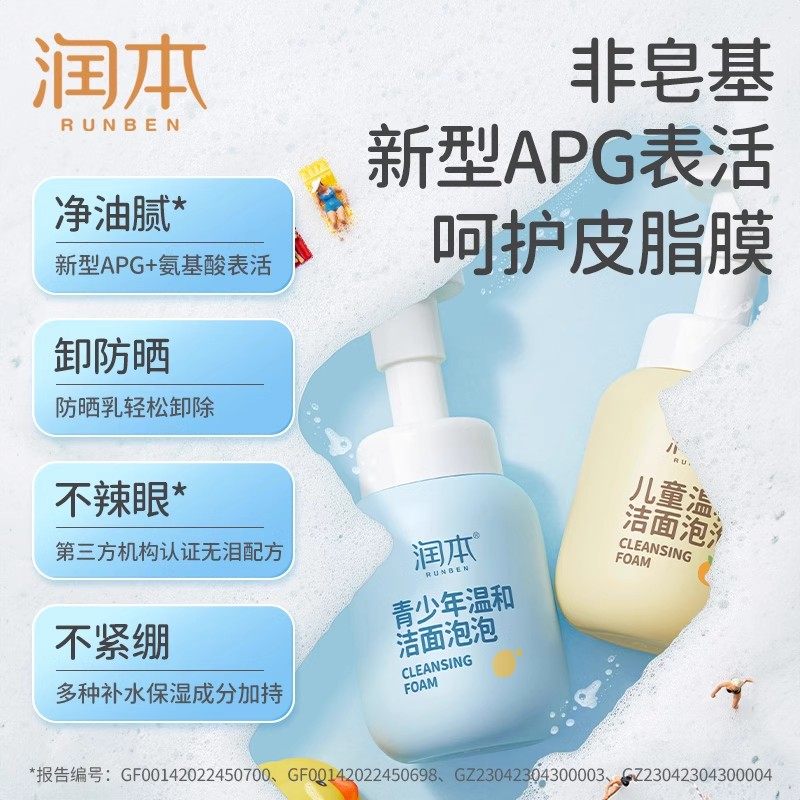 润本儿童洗面奶女孩青少年专用洁面乳男生青春期学生洁面泡泡