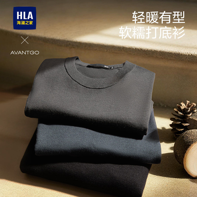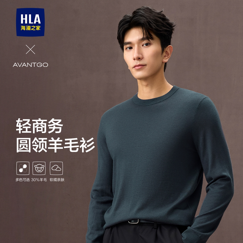 HLA/海澜之家轻商务羊毛远红外针织衫25秋冬新款可机洗黑色毛衣男