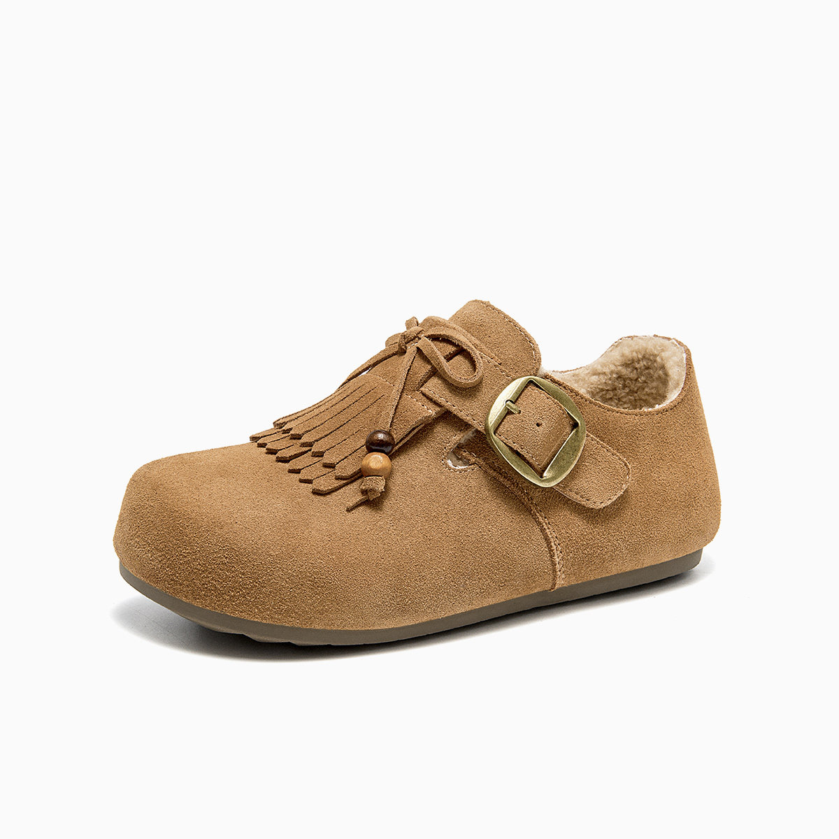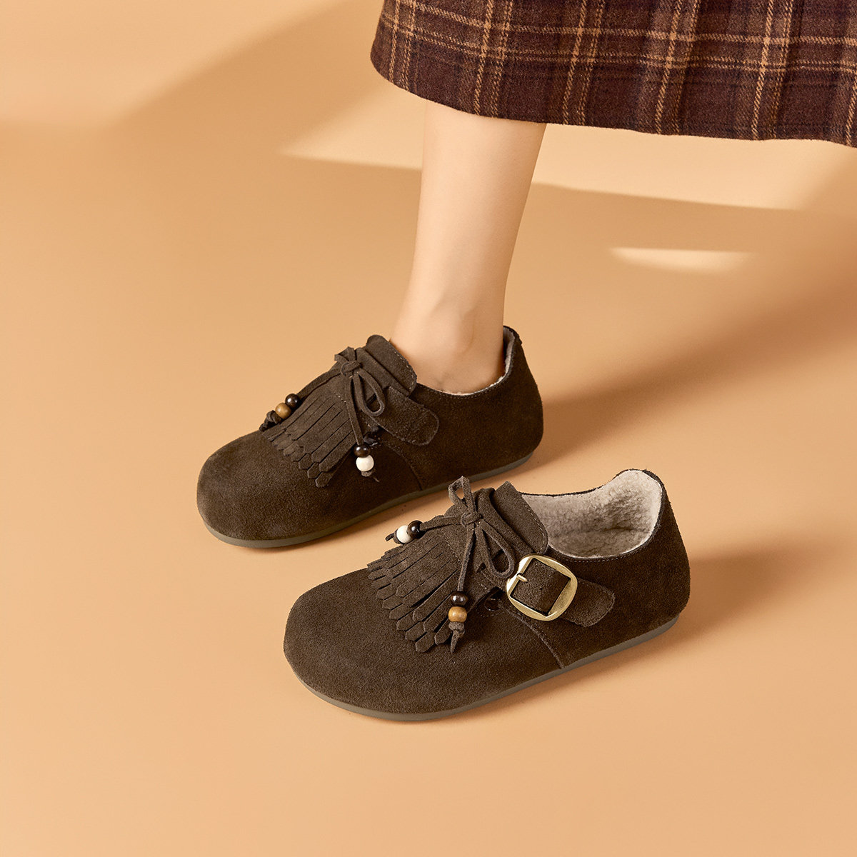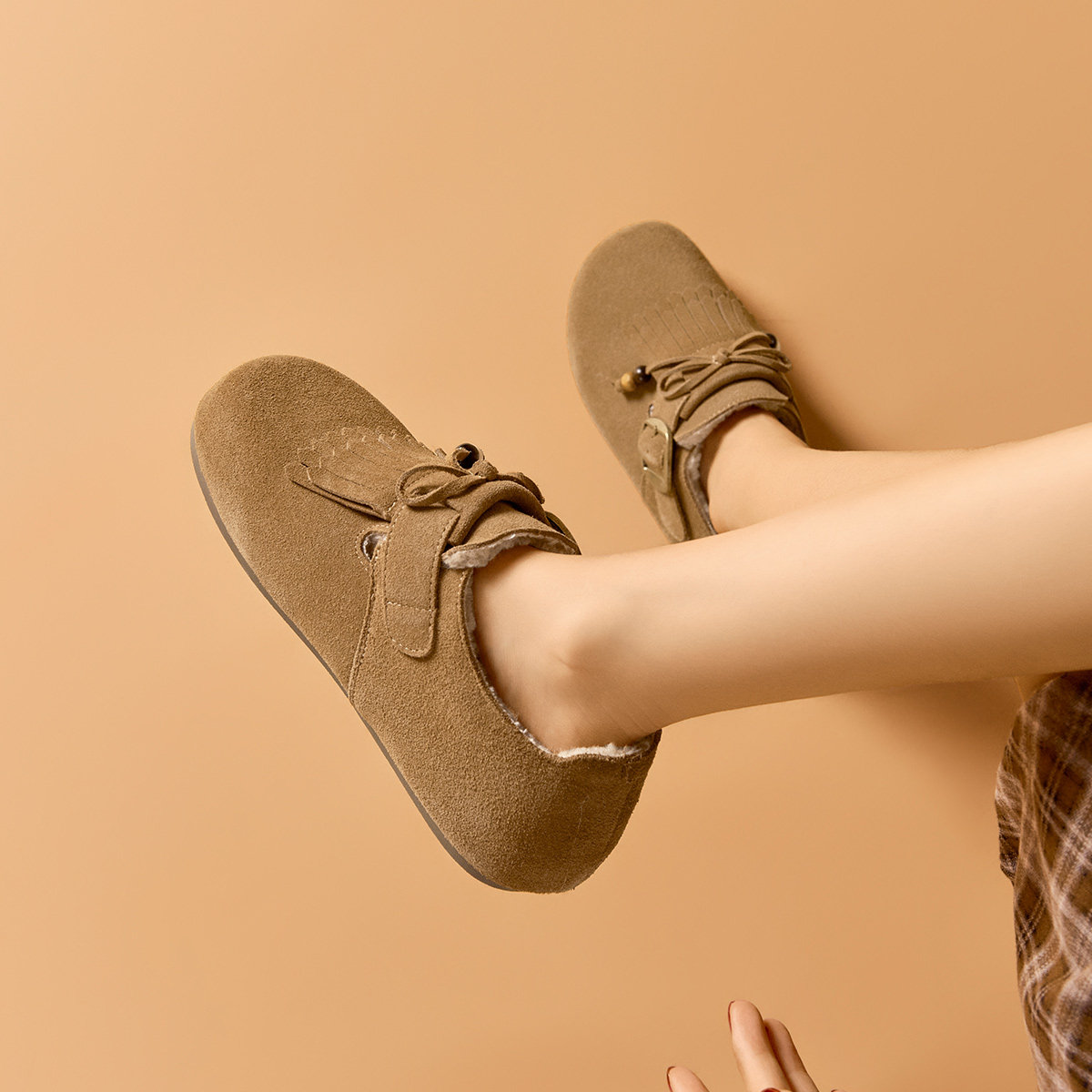 戈美其商场同款真皮勃肯鞋女2025冬季新款加绒流苏串珠懒人一脚蹬