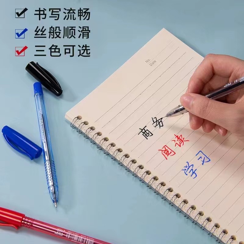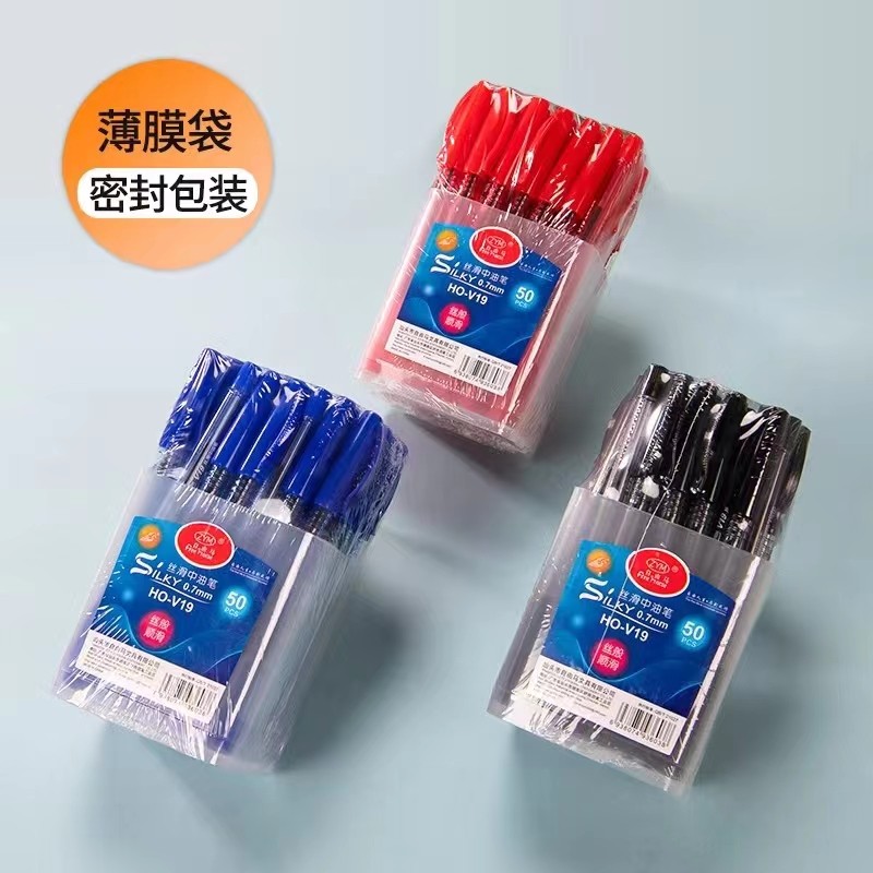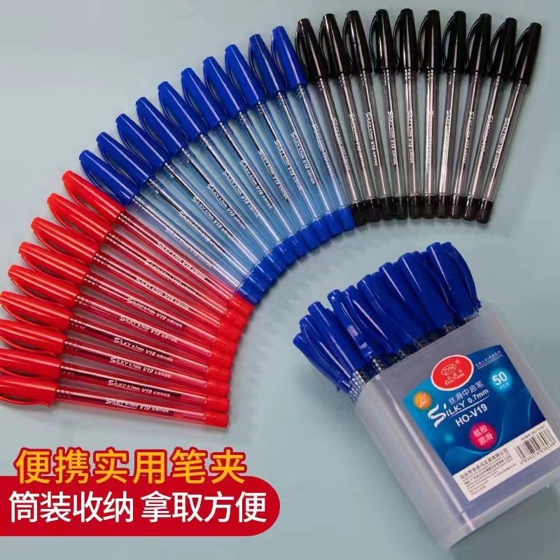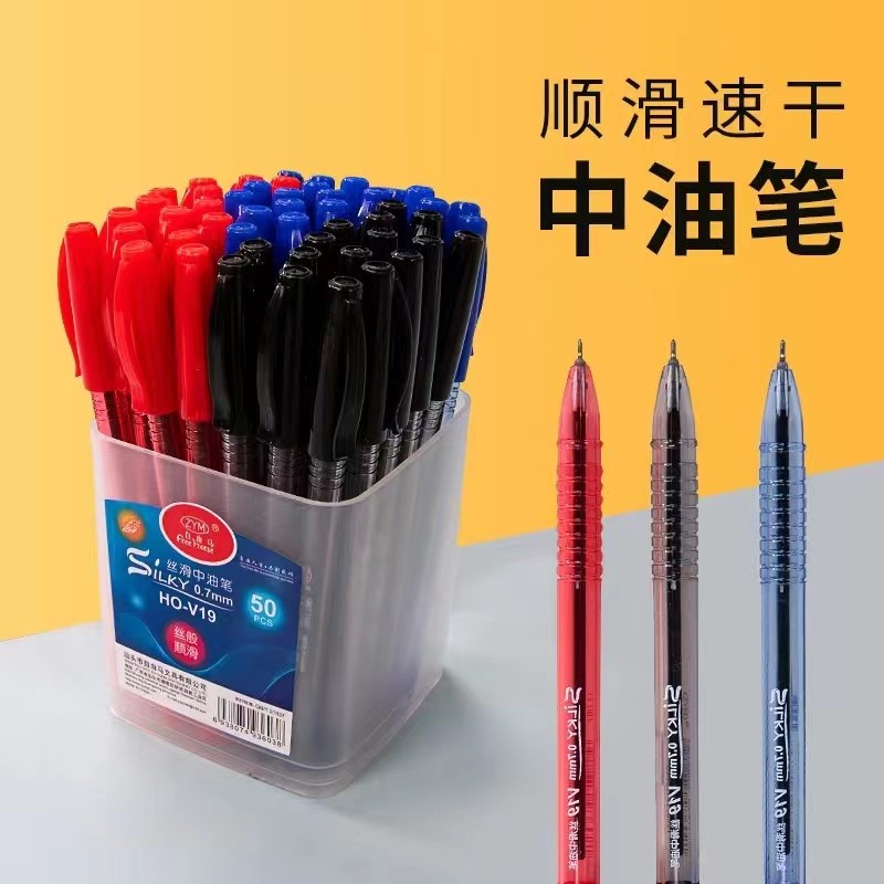 自由马V19中油笔防油开单圆珠笔黑蓝红顺滑原子笔0.7mm50纸装包邮