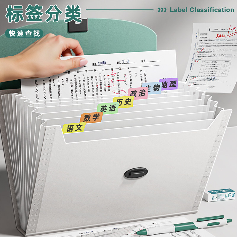 风琴包文件夹大容量办公文件包多层防水A4文件资料说明书试卷收纳袋手提公文包高颜值小学生初中生专用补习包