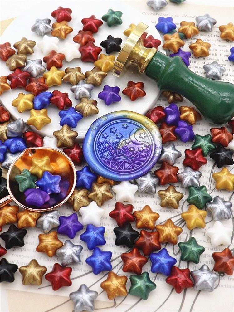 星星火漆蜡粒 火漆印章蜡粒 幸运星珠光色冰淇淋混色马卡龙火漆蜡