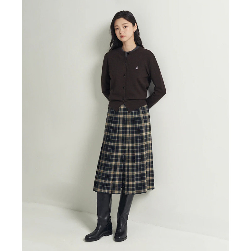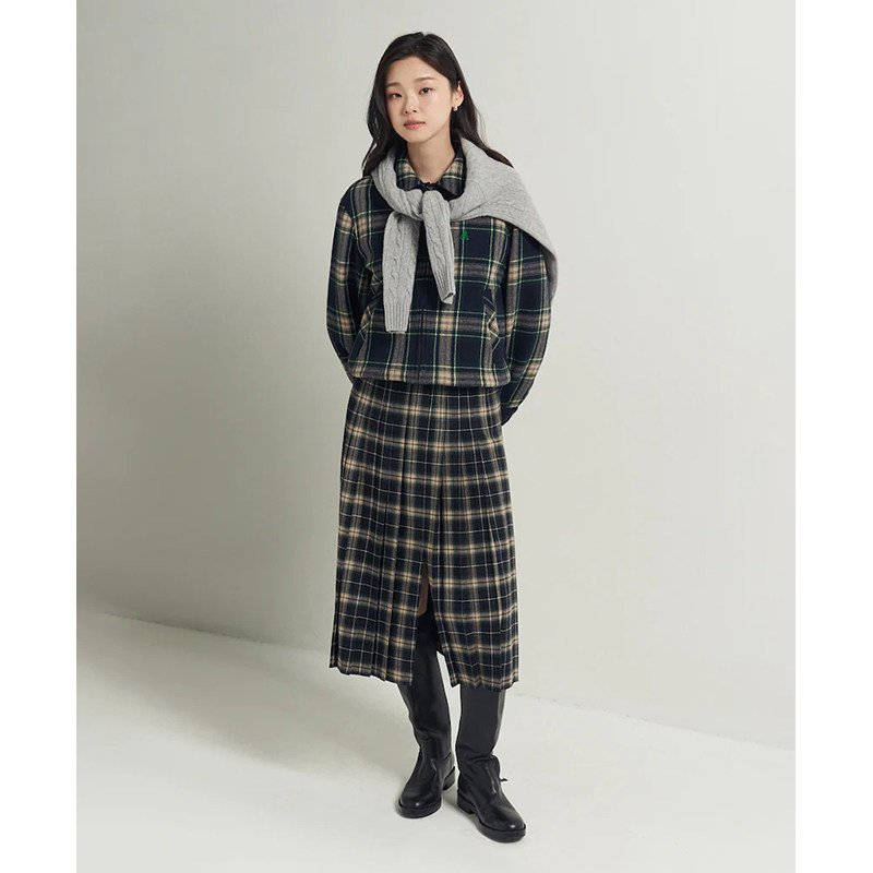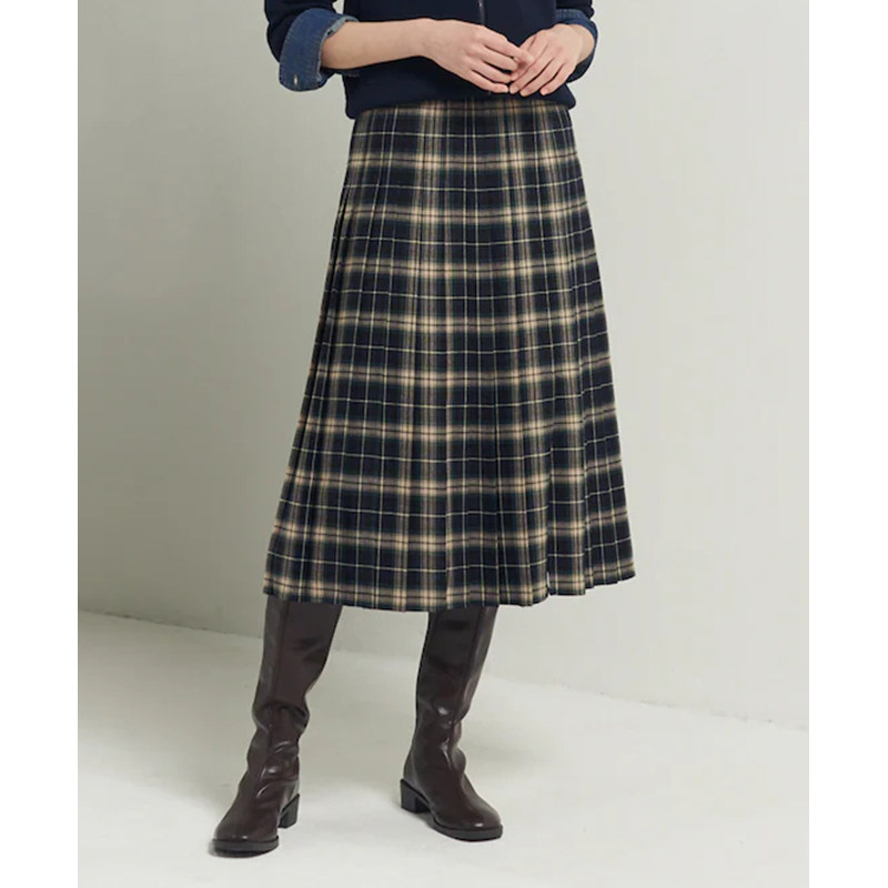 含绵羊毛BEANPOLE滨波春季女士优雅时尚通勤中长款格纹百褶半身裙